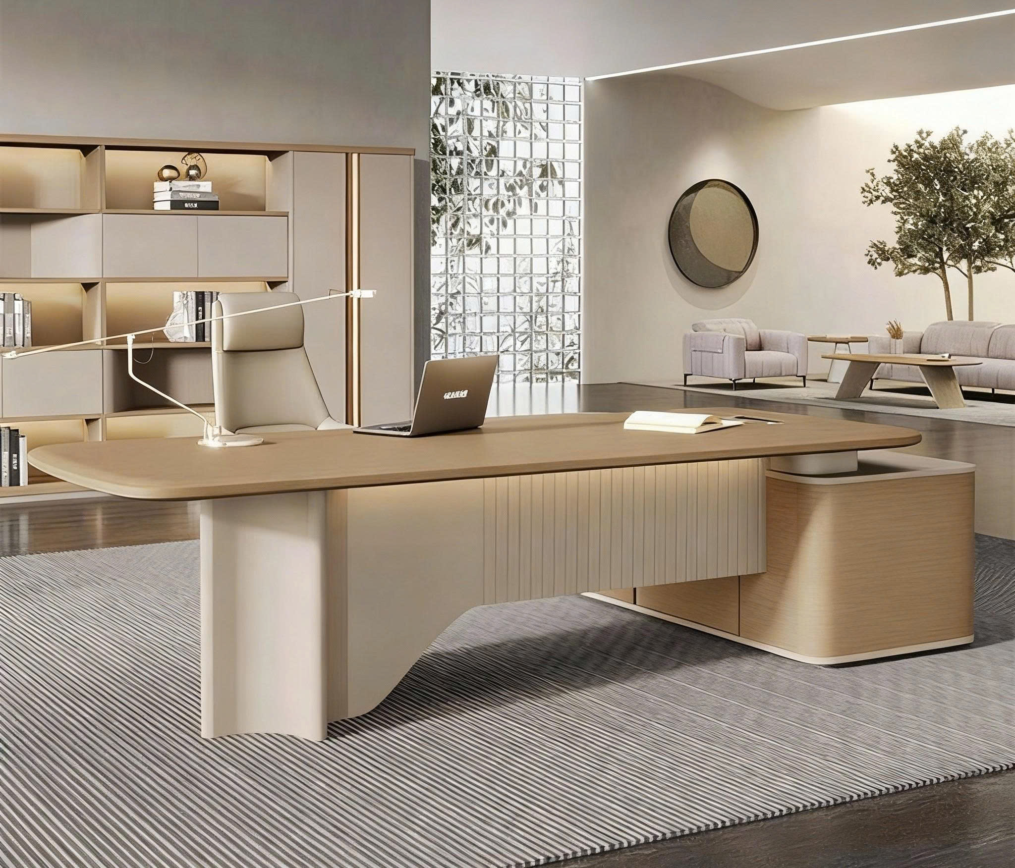 Bàn chữ L: Tận dụng góc phòng, mở rộng diện tích làm việc.