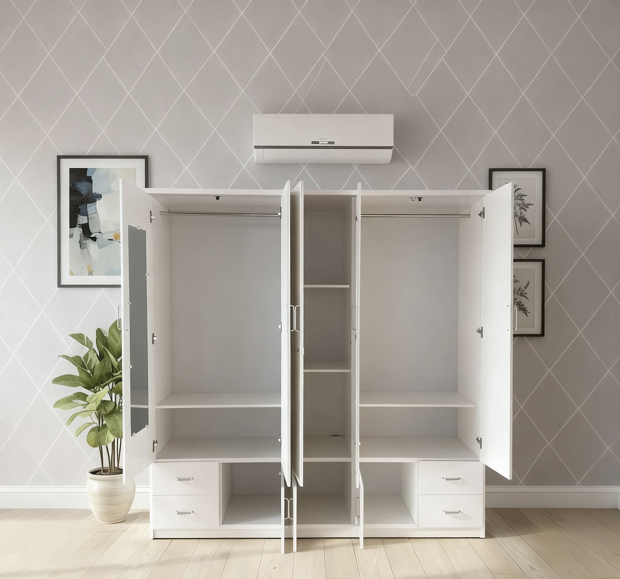 Chất Lượng Vượt Thời Gian: Sử dụng cốt gỗ MDF cao cấp (chống ẩm, chống cong vênh, mối mọt), kết hợp cùng lớp phủ Melamine/Laminatel bền màu. Tủ không chỉ đẹp lúc mới mua mà còn bền bỉ sau nhiều năm sử dụng.