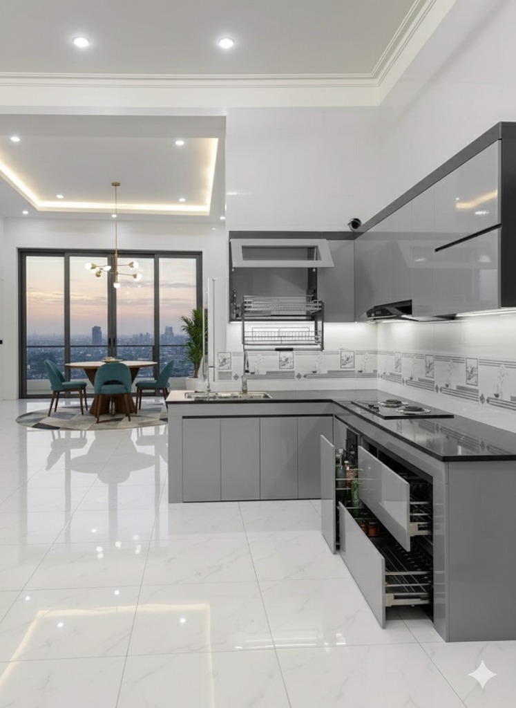 - Bếp trên 2.600.000/mét dài. Kích thước chuẩn Sâu 350, Cao 750
