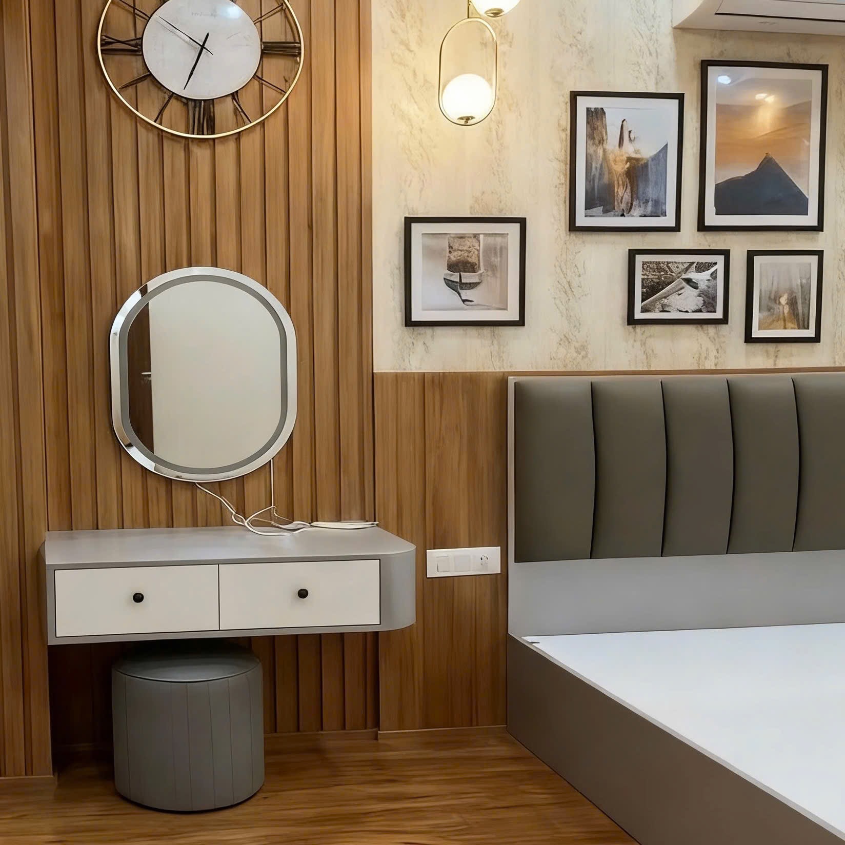 - 1 bàn trang điểm + gương led (Ghế đôn gỗ)