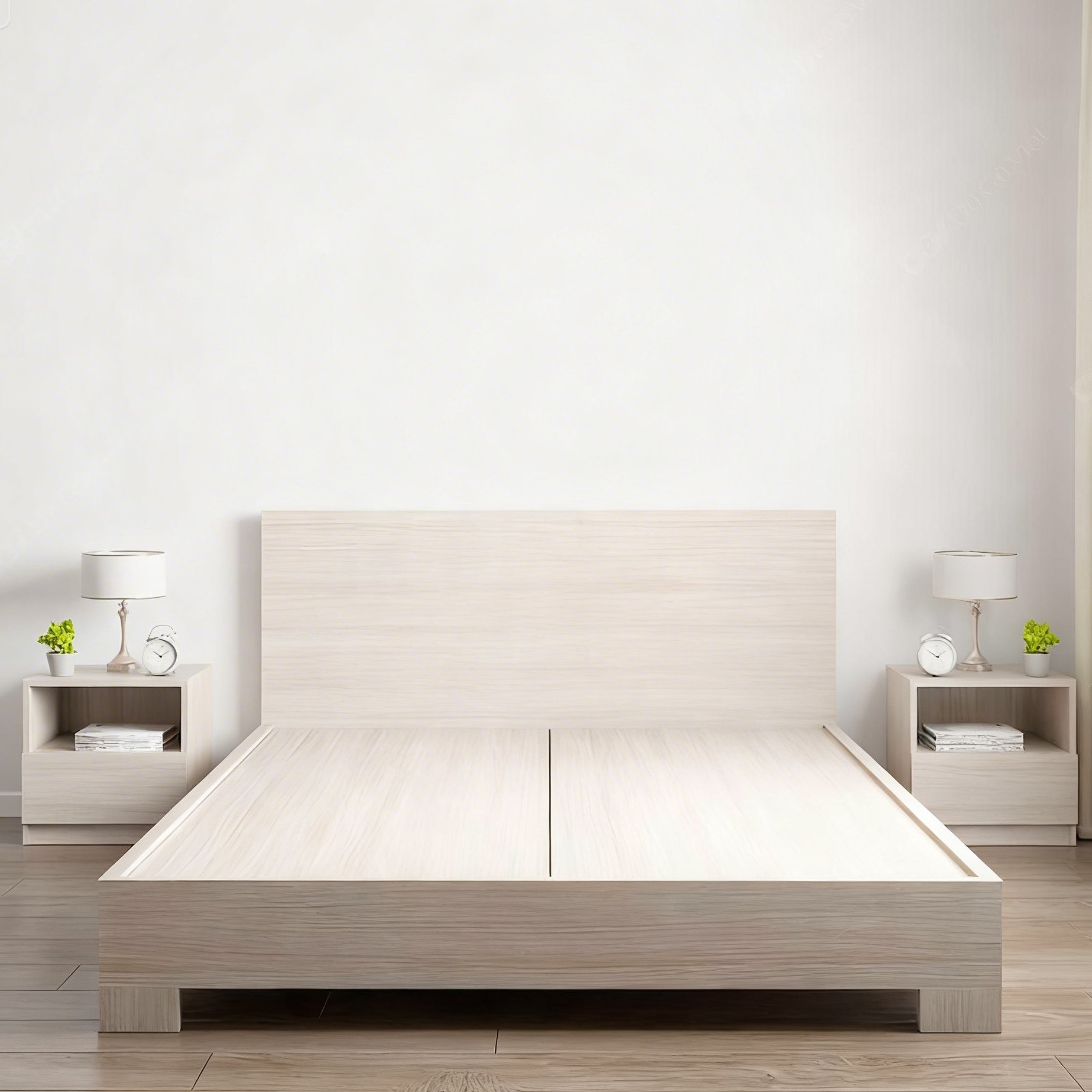 - Giường ngủ gỗ MDF hiện đại chân cao