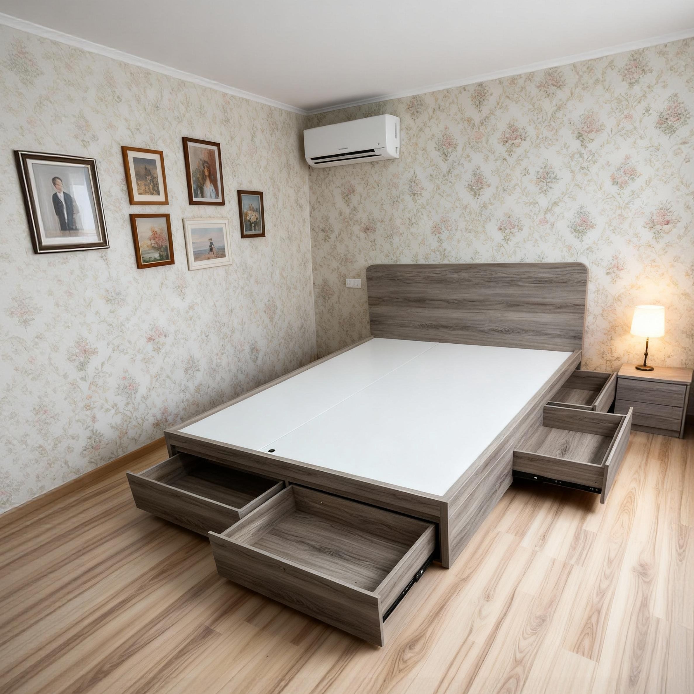 Giường Ngủ Gỗ MDF Phủ Melamin + 4 Ngăn Kéo