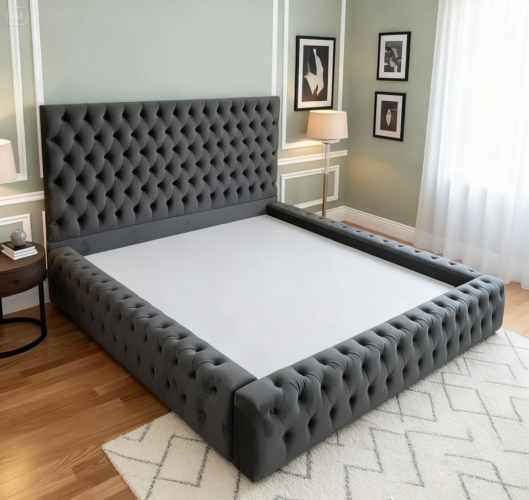 - Chất liệu: Gỗ tự nhiên kết hợp MDF đệm bọc nỉ