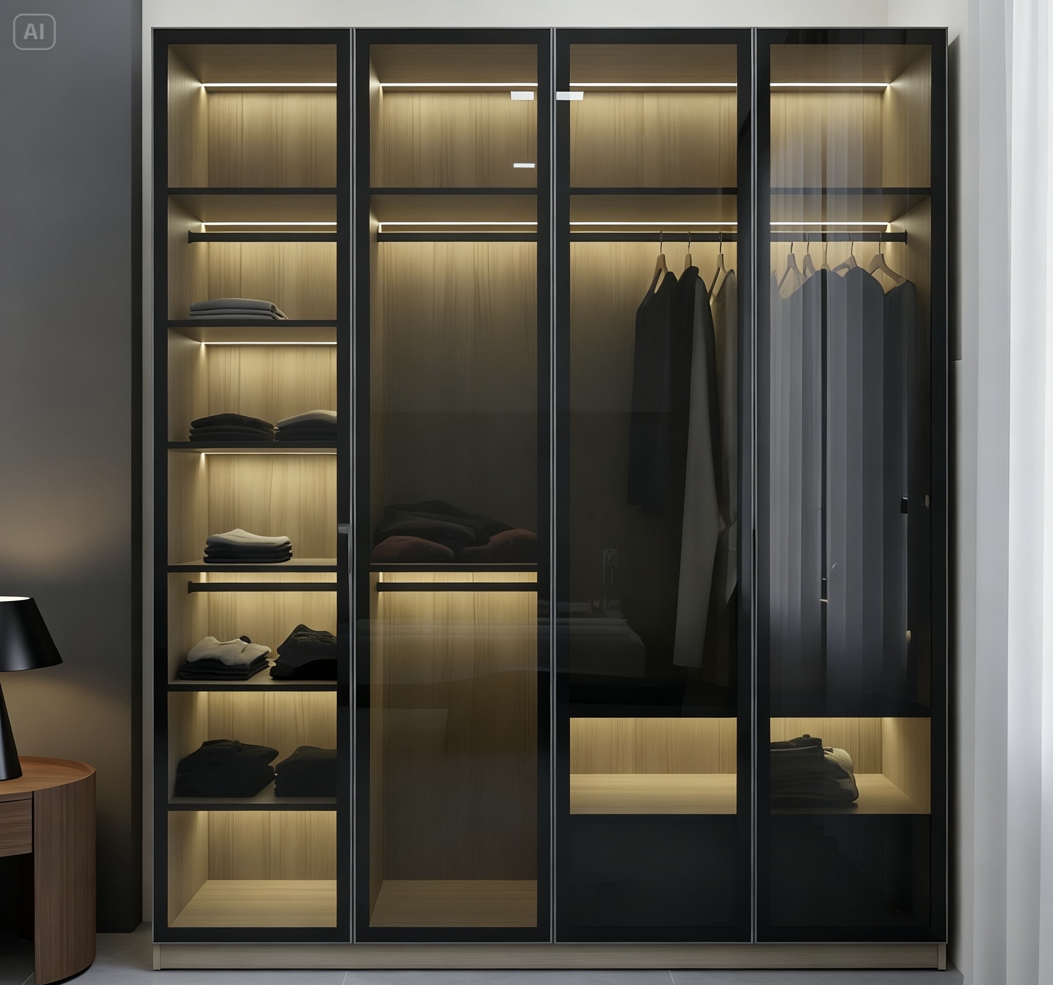 Tủ quần áo cánh kính có đèn led