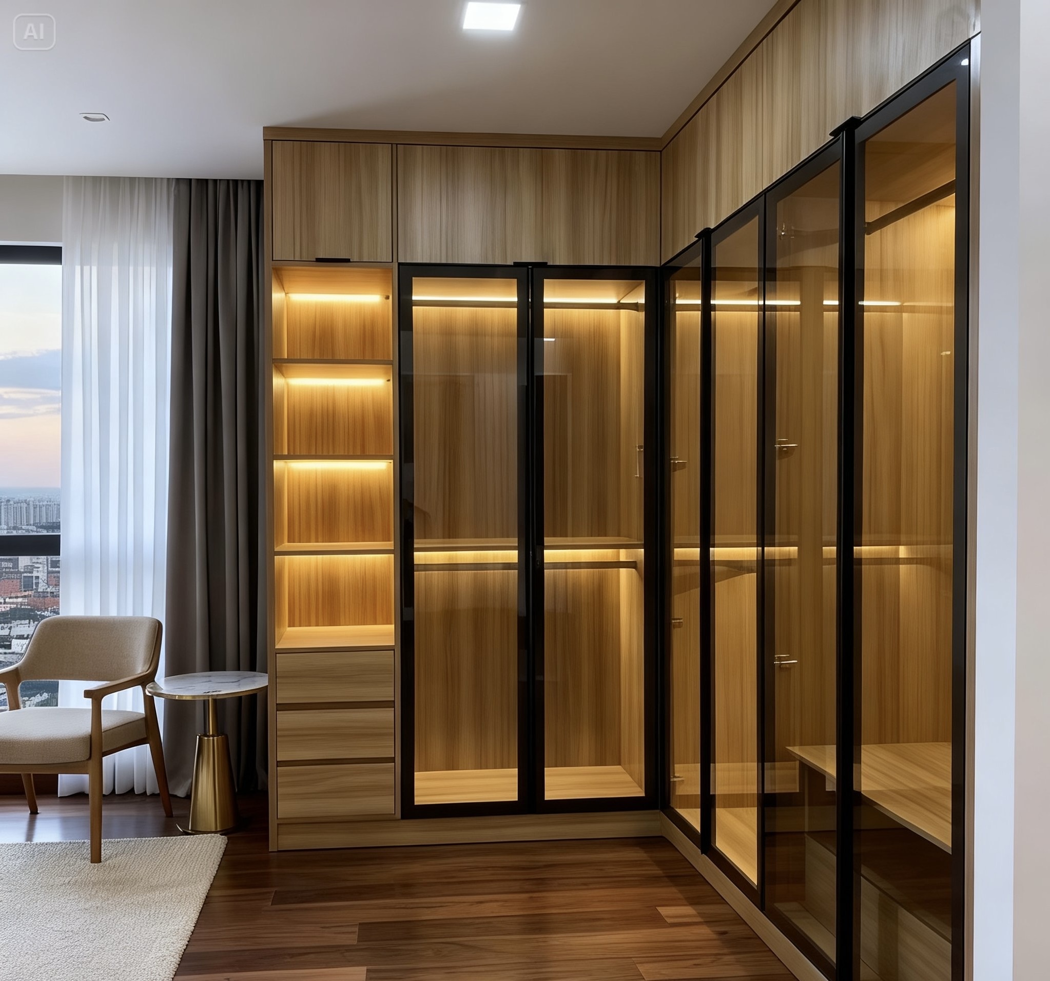 Tủ quần áo cánh kính đóng theo yêu cầu tính mét vuông