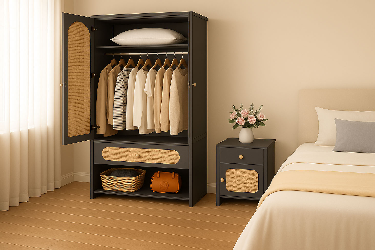 Tạo điểm nhấn cho phòng ngủ: Vừa đáp ứng nhu cầu lưu trữ, vừa mang lại sự sang trọng cho không gian sống.