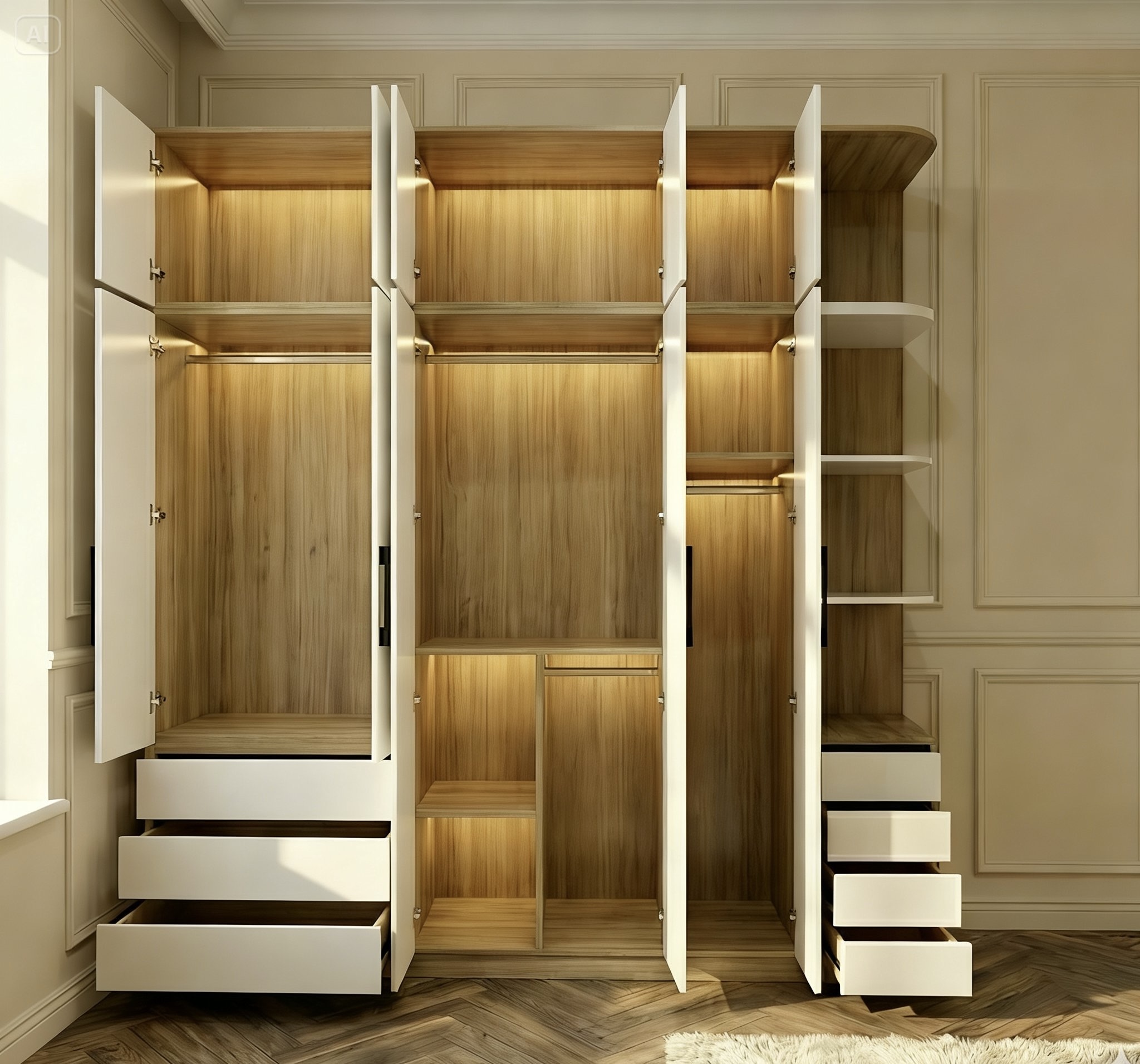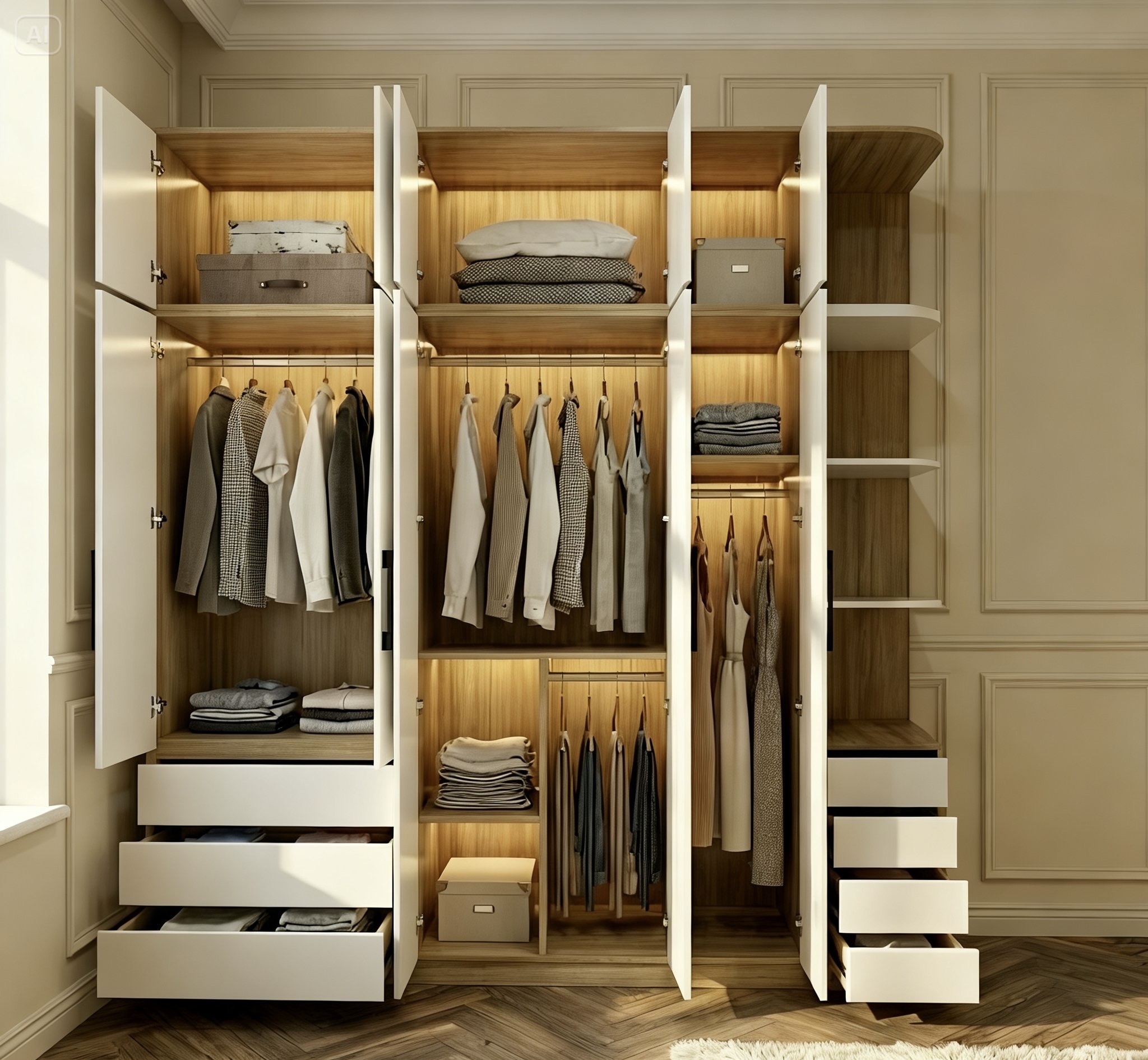 Xưởng Trâm Lâm Nhận Đóng Tủ Quần Áo Gỗ MDF Phủ Melamin Theo Yêu Cầu
