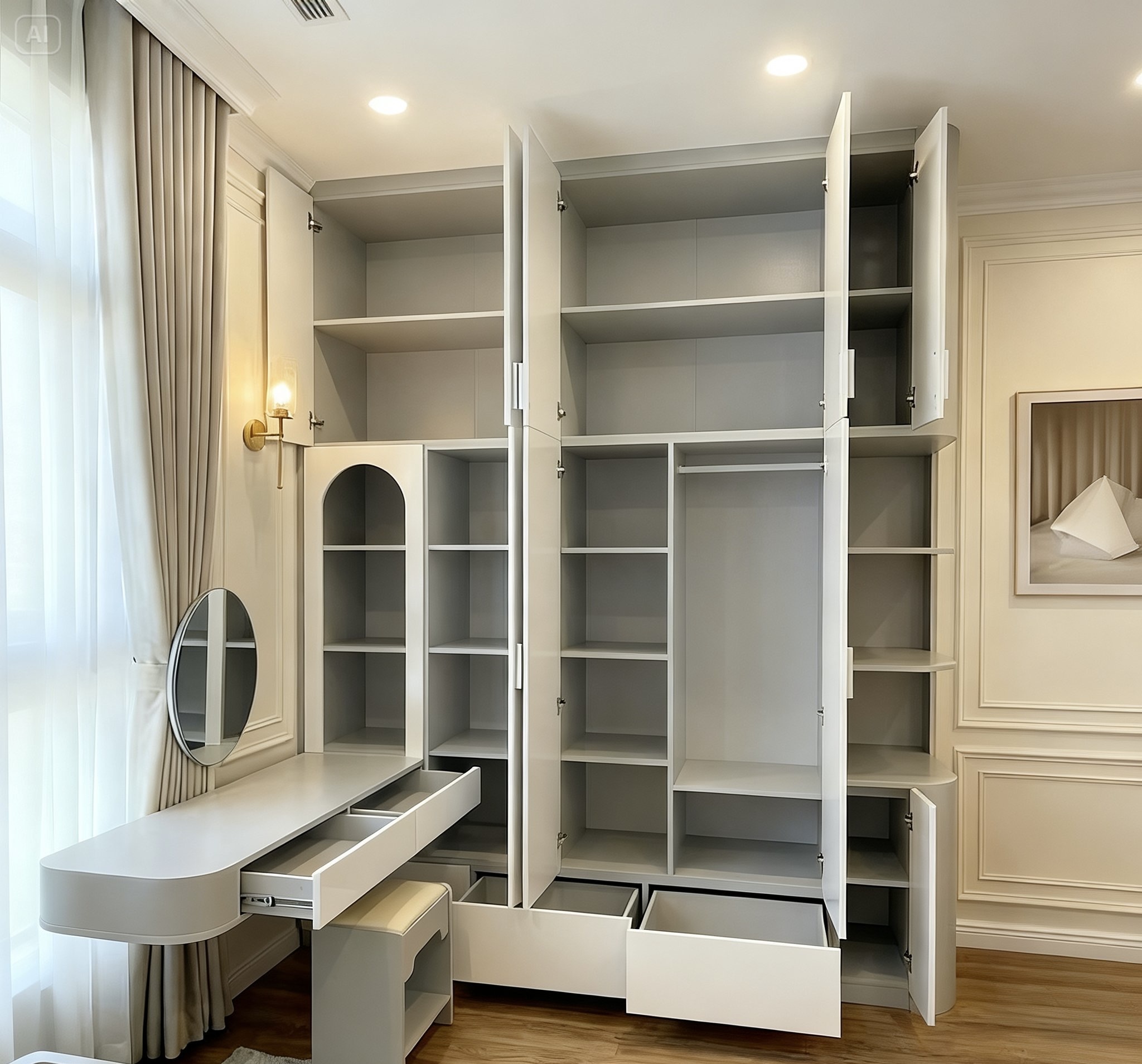 - Bàn treo ngang 1m + gương tròn + đôn ngồi giá 2.000.000