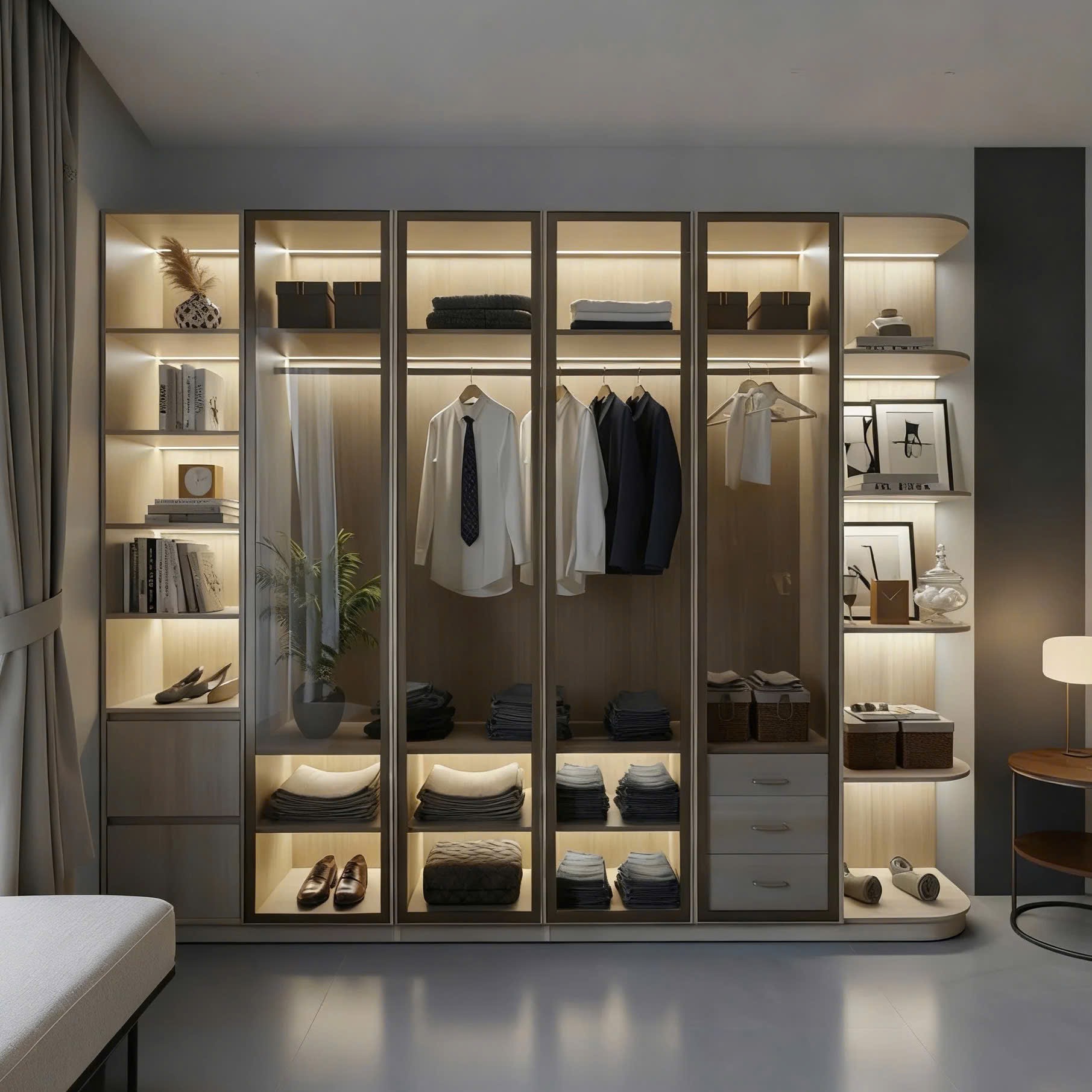 Tủ quần áo cánh kính có đèn led