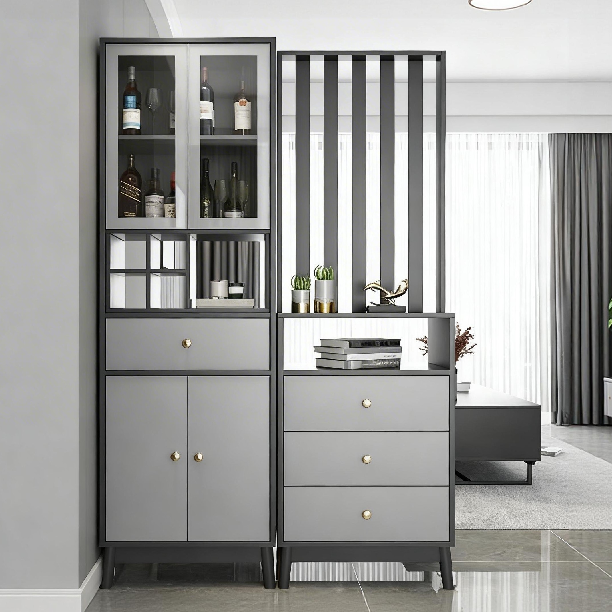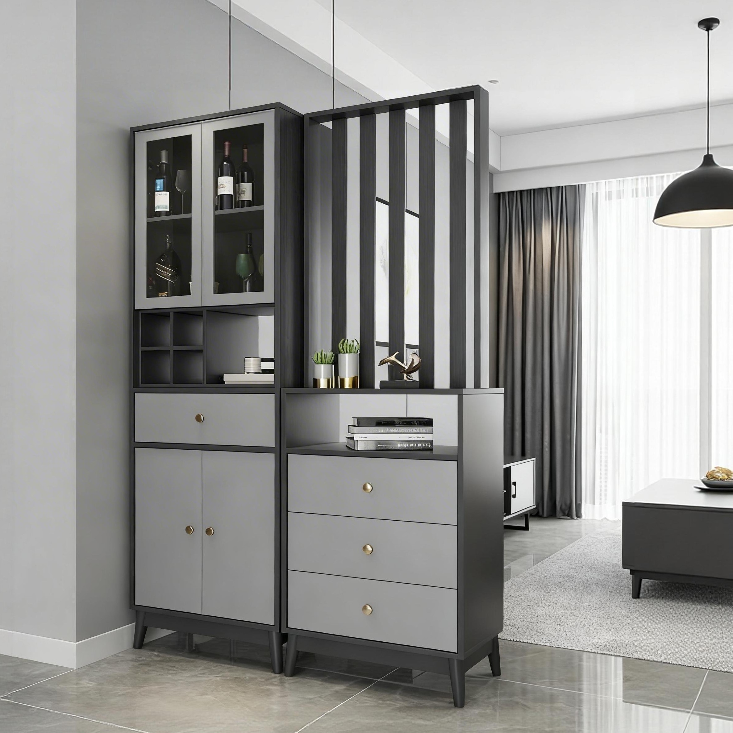 Tủ rượu cánh kính kết hợp ngăn kéo hiện đại