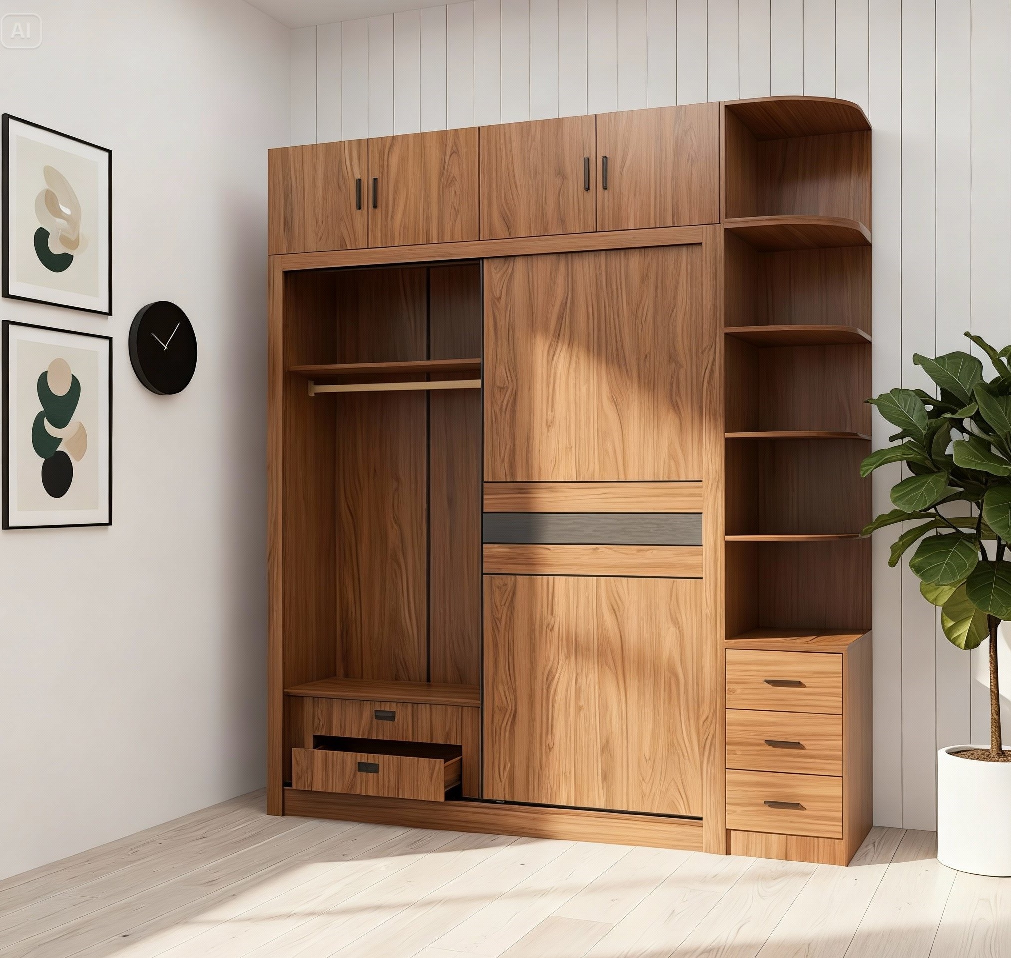 Giữa vô vàn chất liệu, tủ quần áo cửa lùa gỗ công nghiệp (MDF, MFC chống ẩm phủ Melamine/Laminate/Acrylic) đang chiếm lĩnh ngôi vương nhờ những đặc tính vượt trội