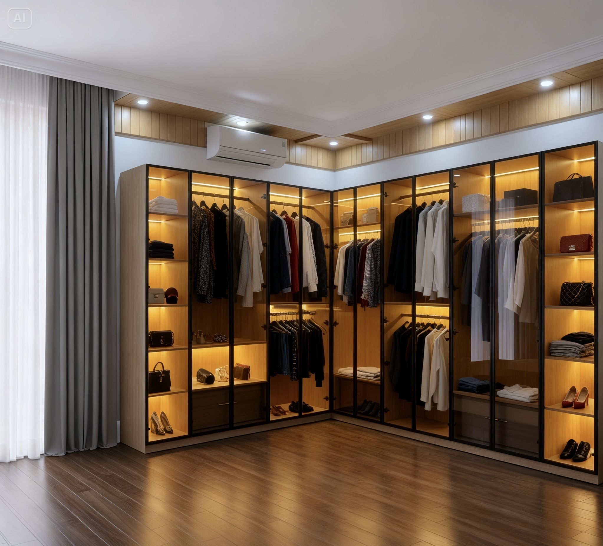 TỦ ÁO CÁNH KÍNH – BIẾN PHÒNG NGỦ THÀNH SHOWROOM THỜI TRANG TẠI GIA