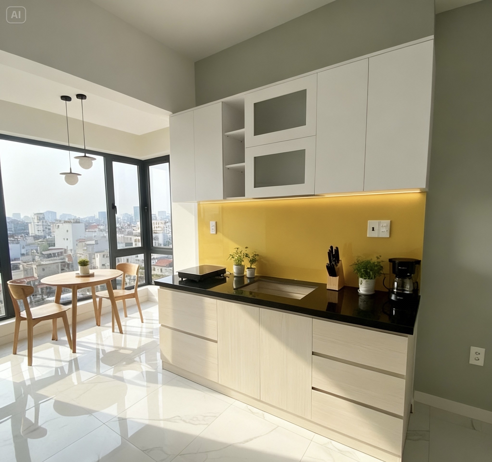 - Bếp trên 2.600.000/mét dài. Kích thước chuẩn Sâu 350, Cao 750