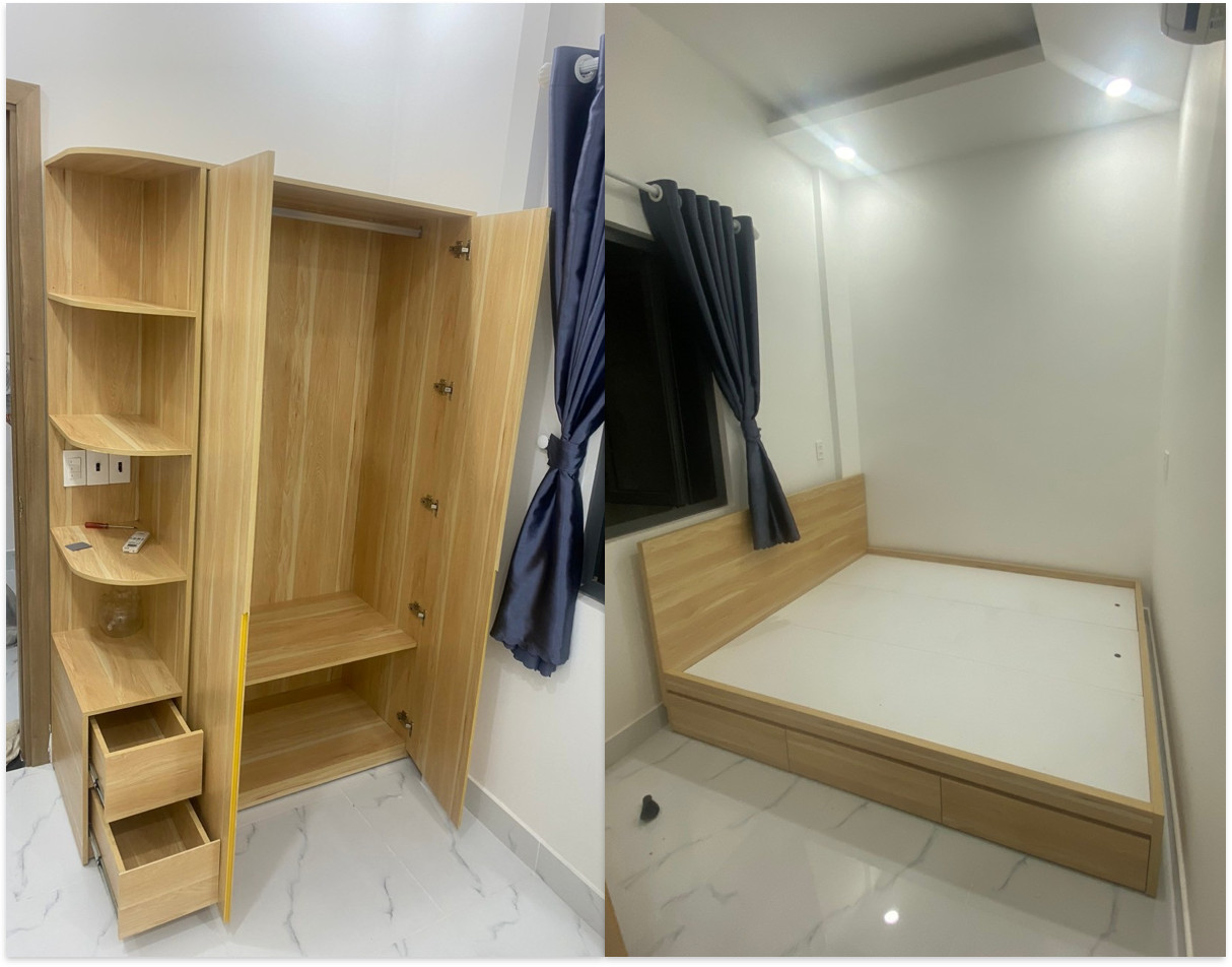 - 1 giường 1m6 x 2m x 30cm + 3 ngăn kéo