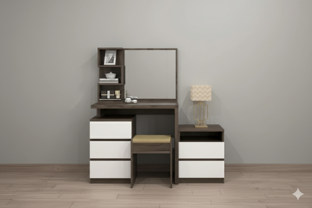 - 1 bàn trang điểm 80cm + đôn ngồi