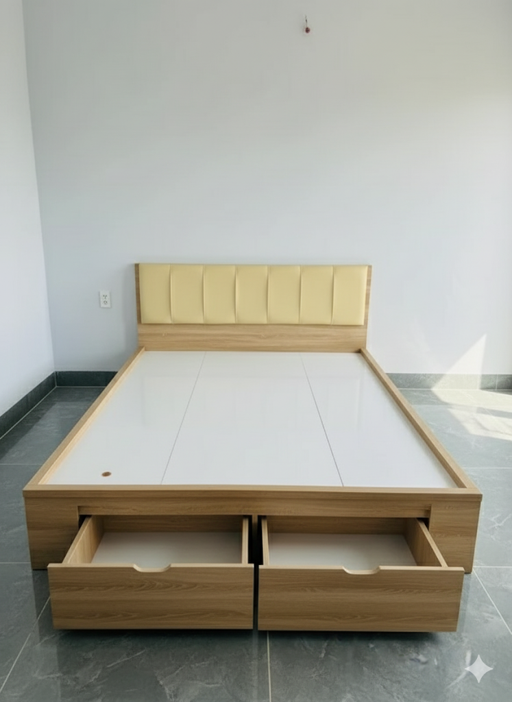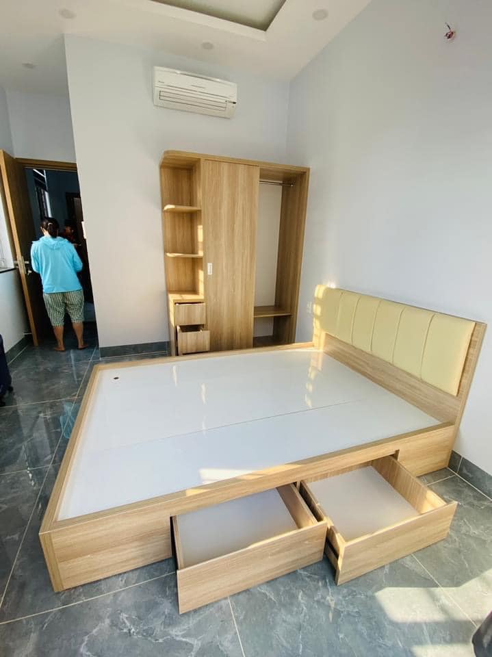 - 1 giường 1m6 x 2m + 2 ngăn kéo + nệm đầu giường