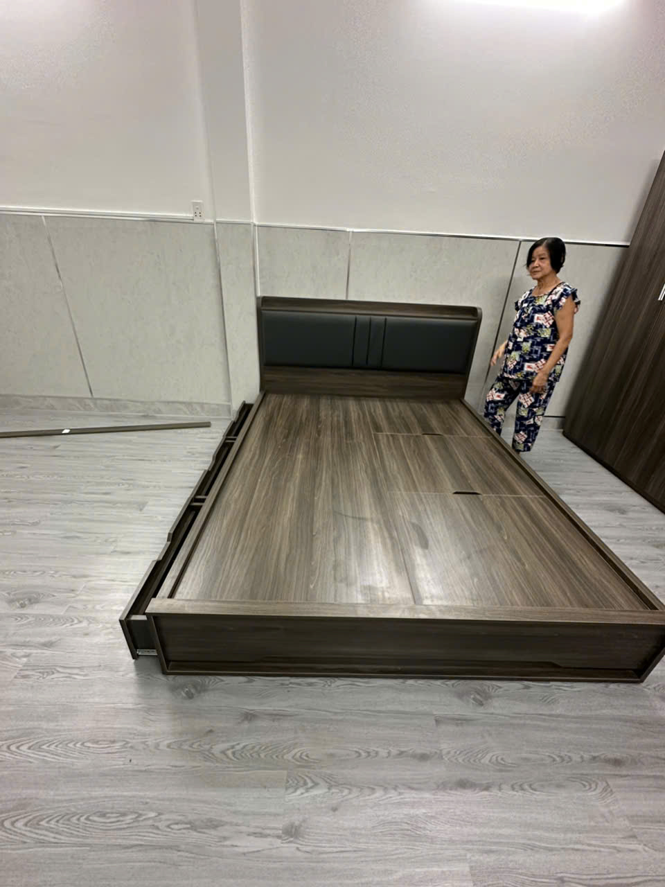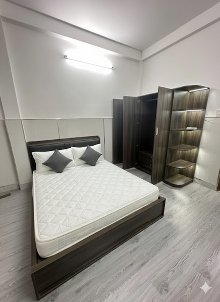 - 1 giường thông minh 1m6 x 2m ( đầu kệ, 3 cánh lật, 3 ngăn kéo )