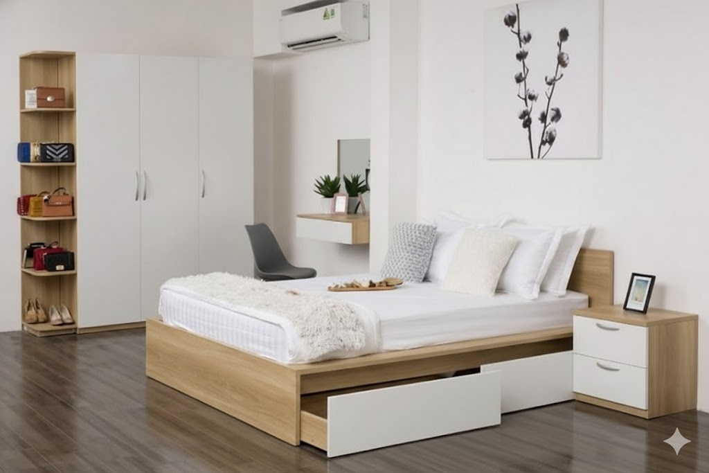 Combo Nội Thất Phòng Ngủ Gỗ MDF Phủ melamin cao cấp