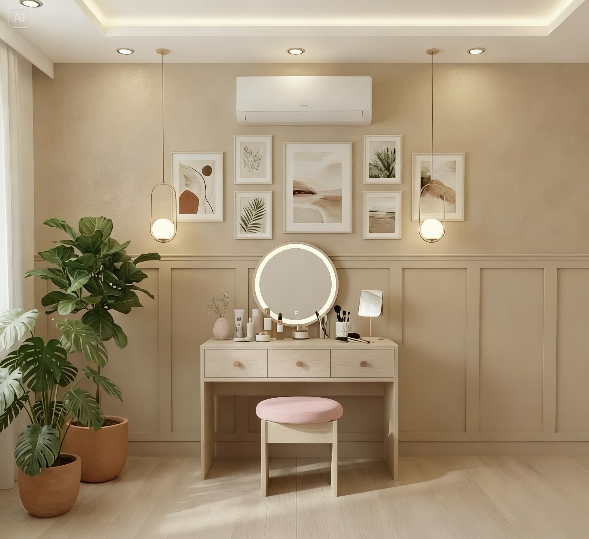 - 1 Bàn trang điểm 80cm x 40cm ( ghế đôn nệm chữ nhât - gương led )