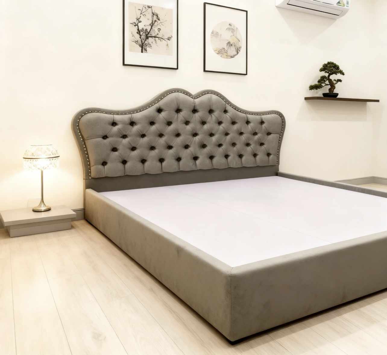 - Chất liệu: Gỗ tự nhiên kết hợp MDF đệm bọc nỉ