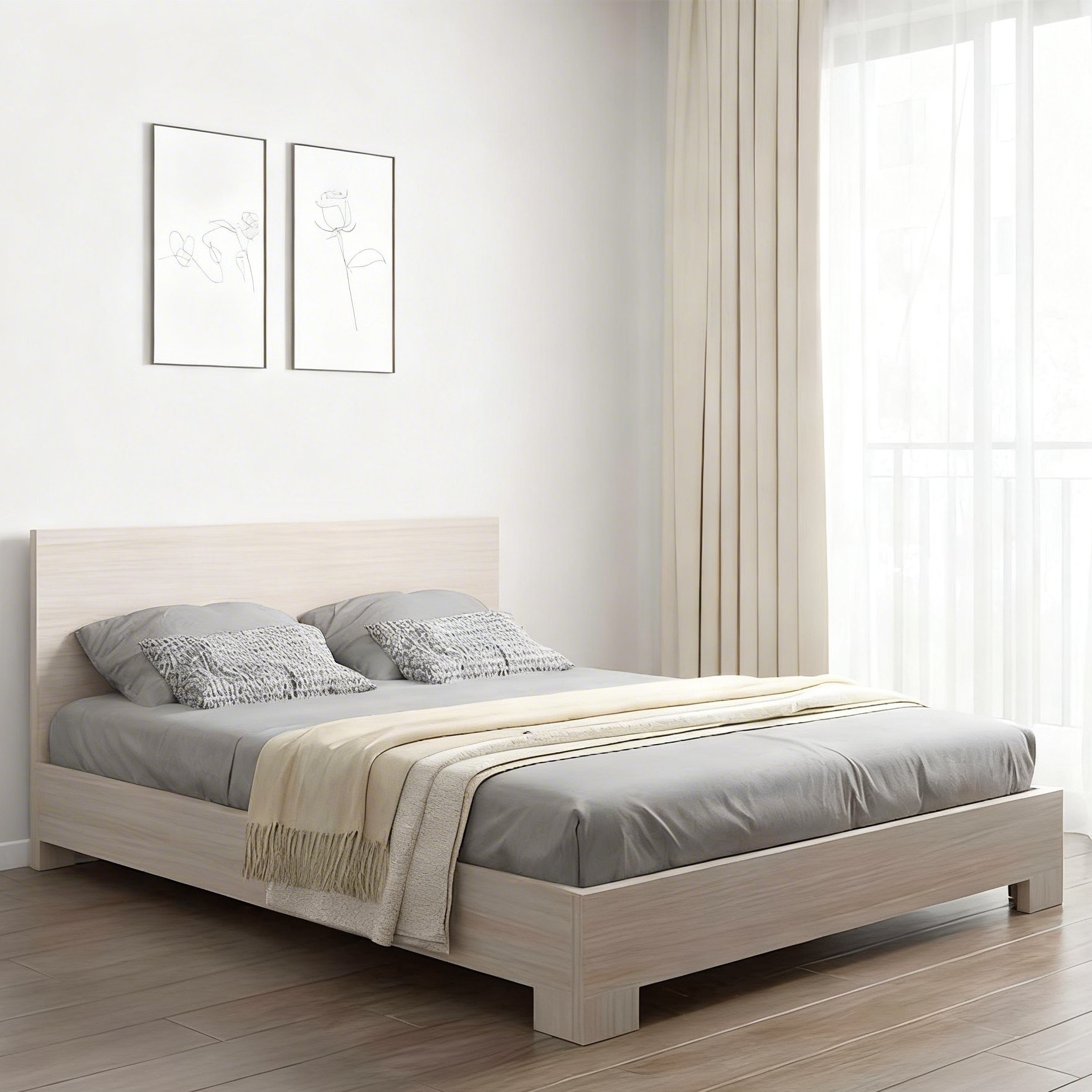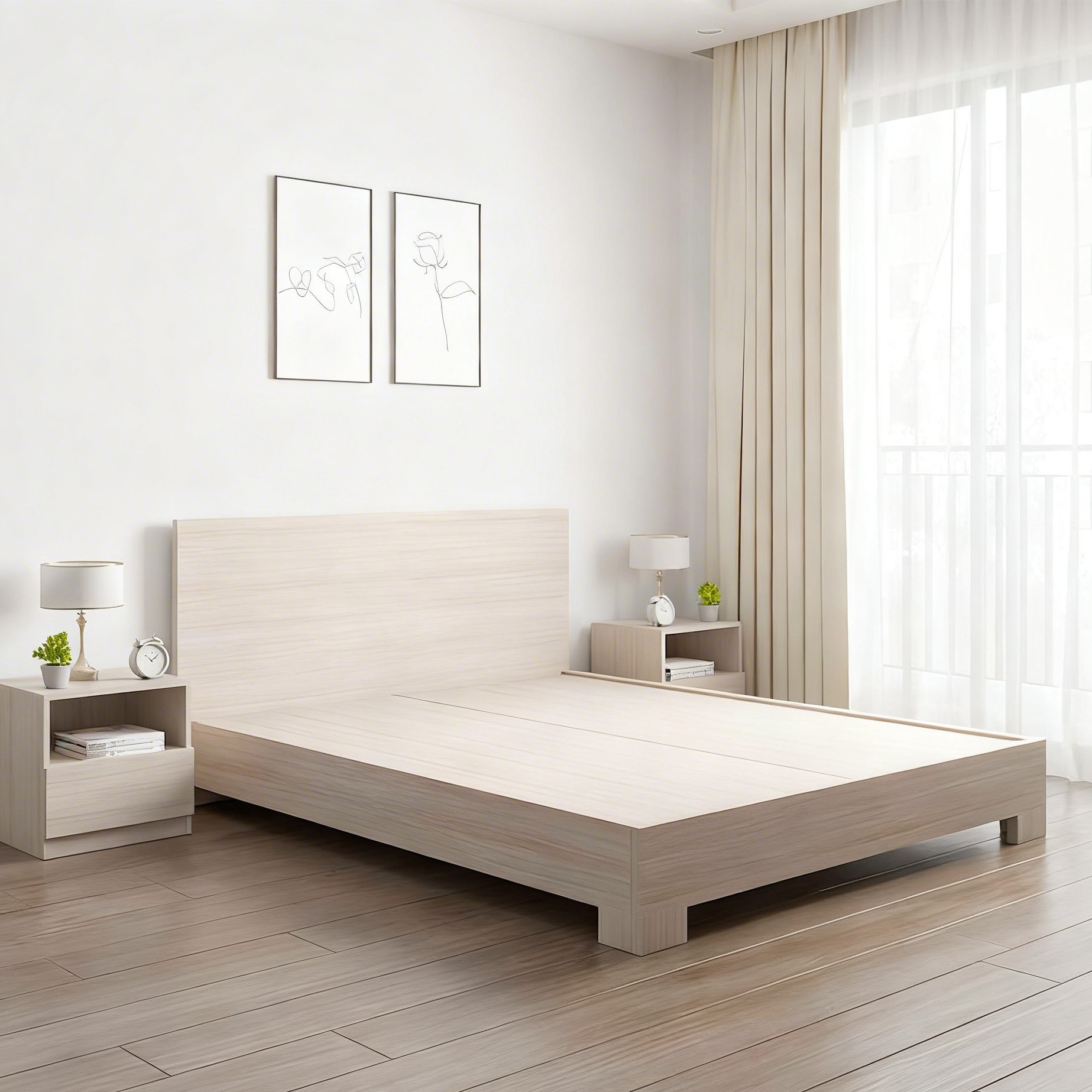 - Giường ngủ gỗ MDF hiện đại chân cao