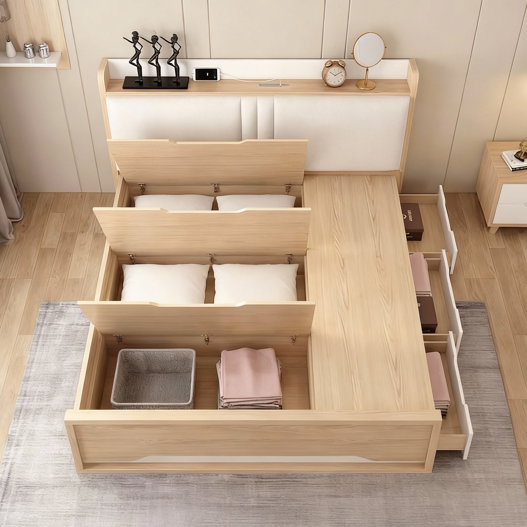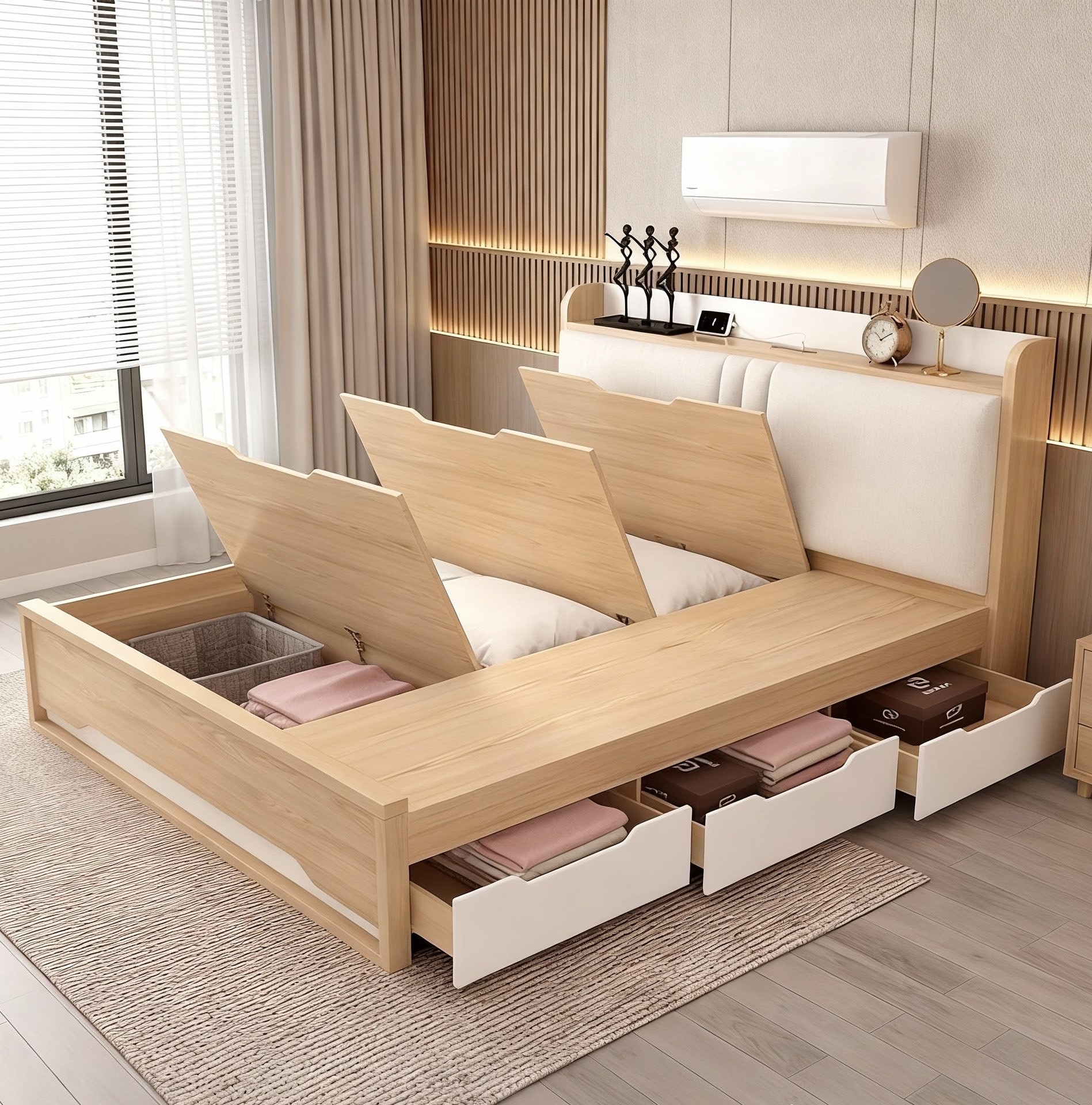 - Giường ngủ gỗ MDF thông minh có 3 ngăn kéo + 3 cánh lật