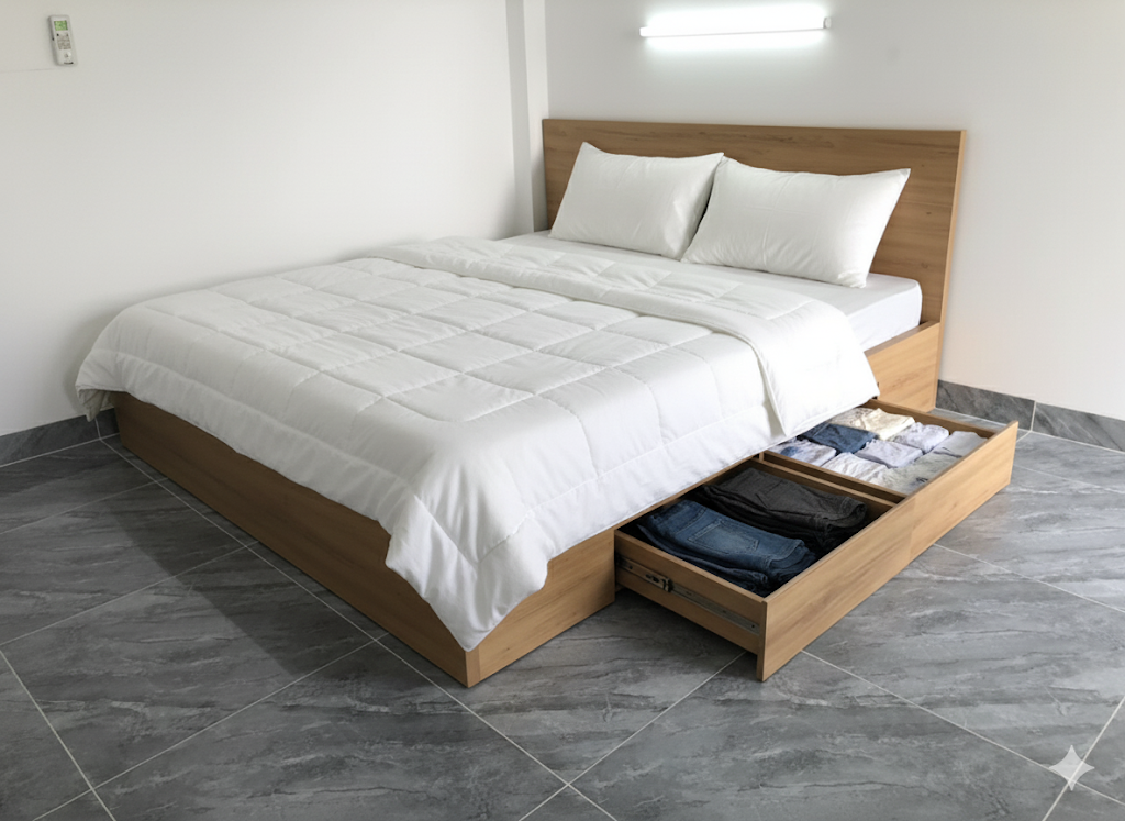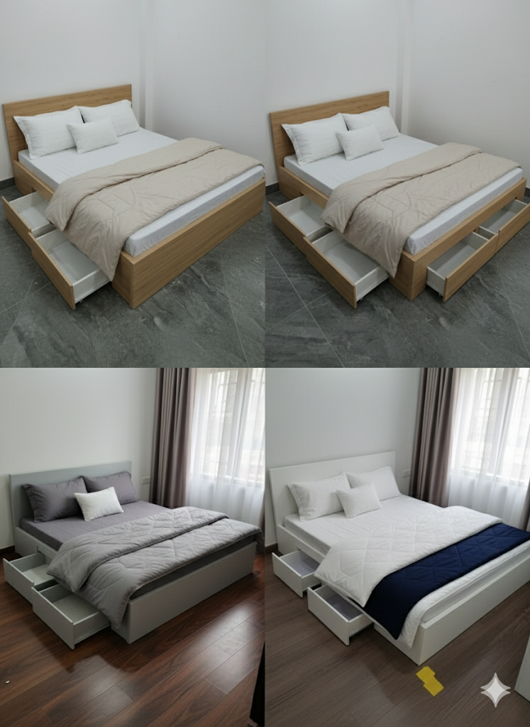 - Giường ngủ gỗ MDF có 2 ngăn kéo