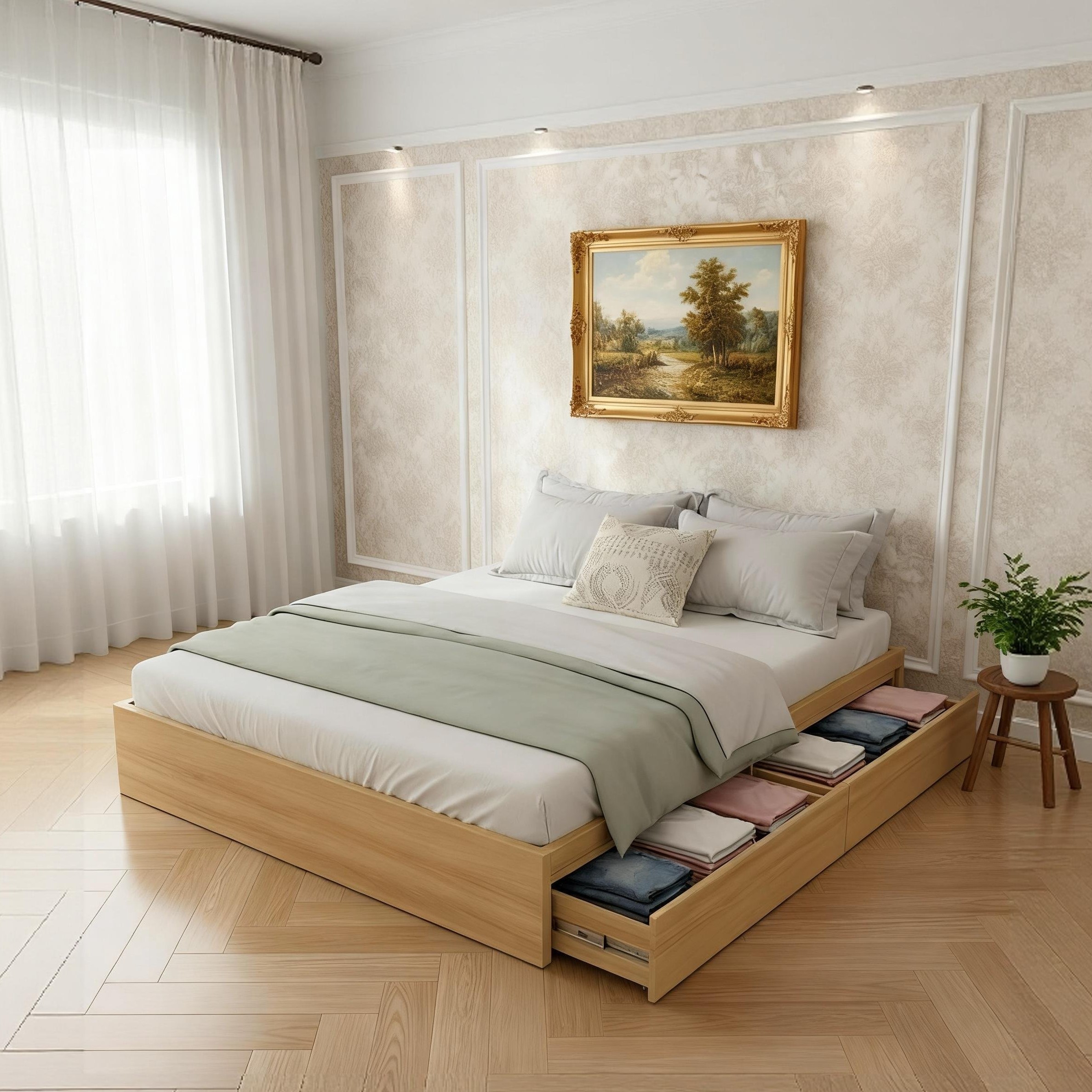 - Giường ngủ gỗ MDF có 2 ngăn kéo dài - Không đầu giường