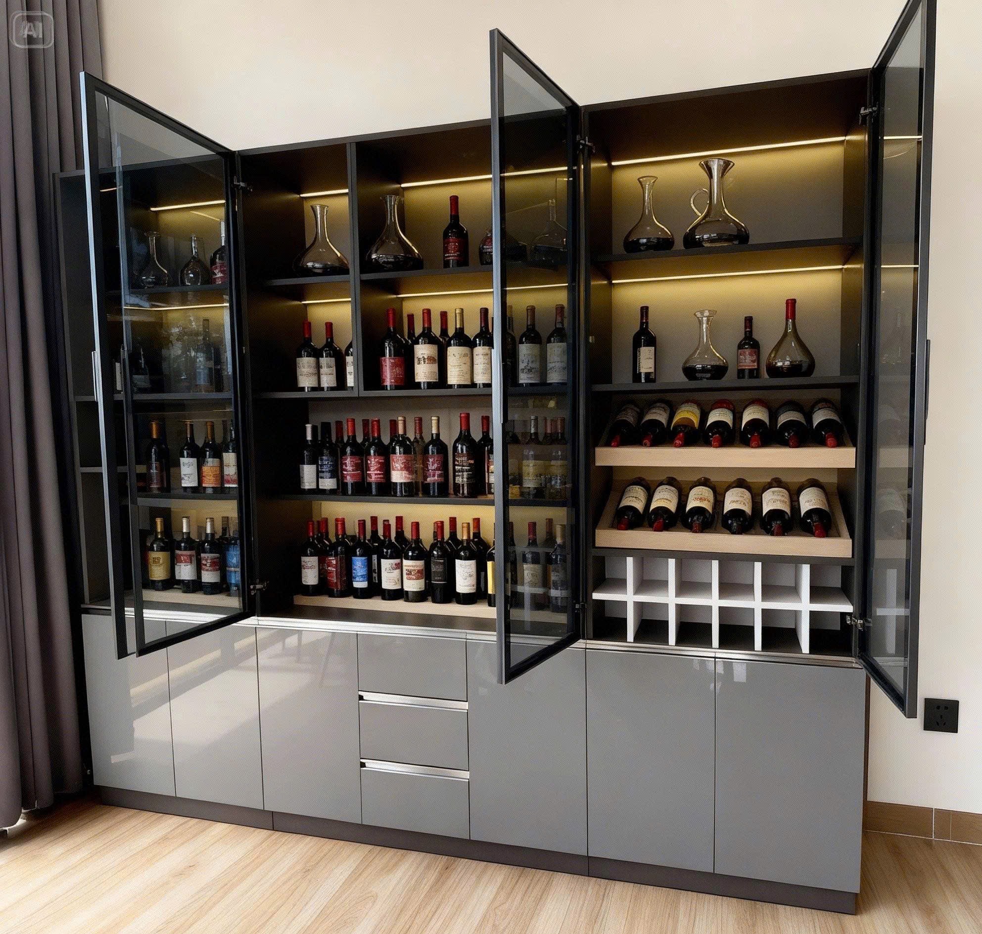 * Chất liệu : Thùng gỗ MDF - Cánh kính khung nhôm