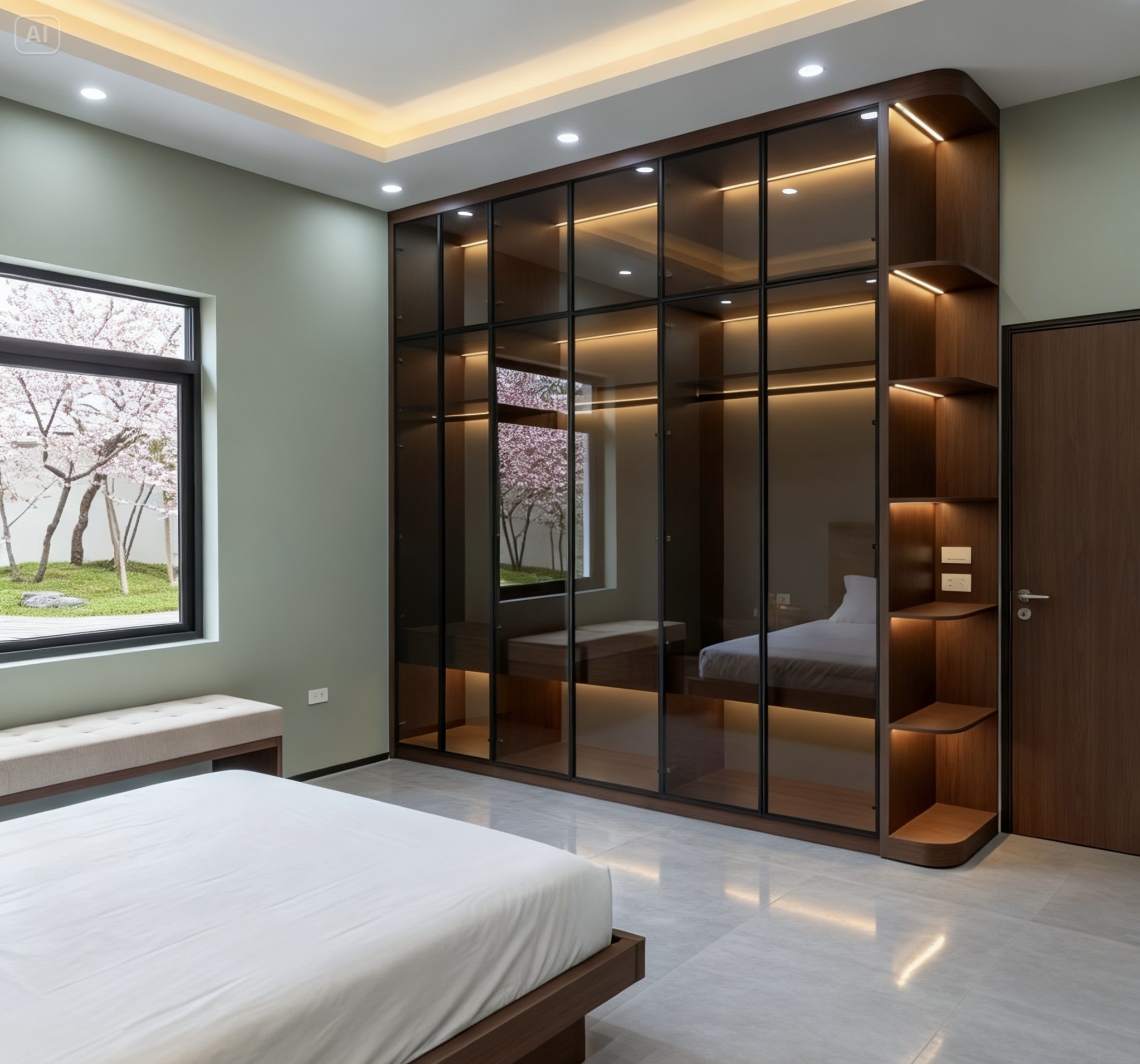 Tủ quần áo cánh kính có đèn led