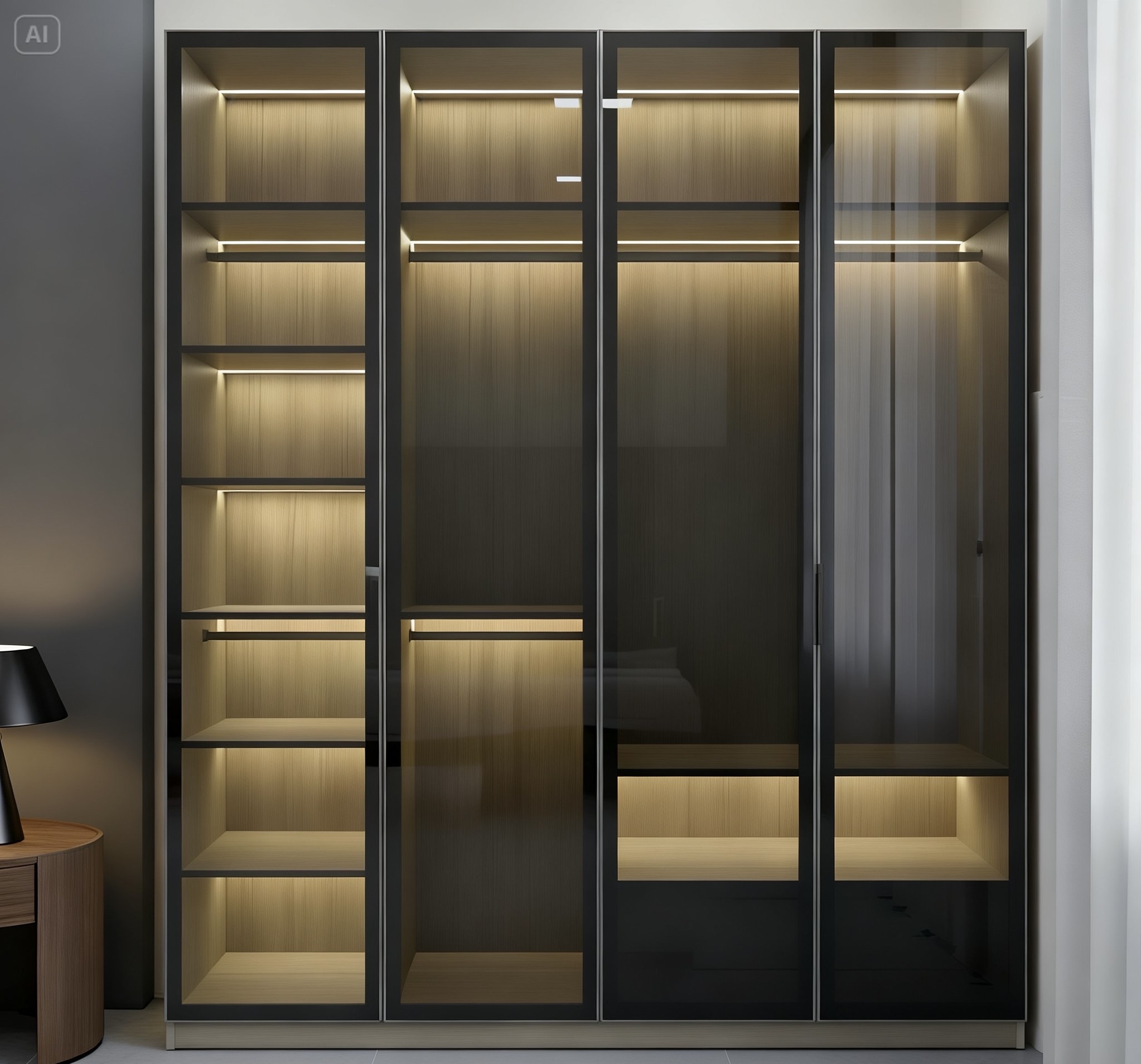 Tủ quần áo cánh kính có đèn led