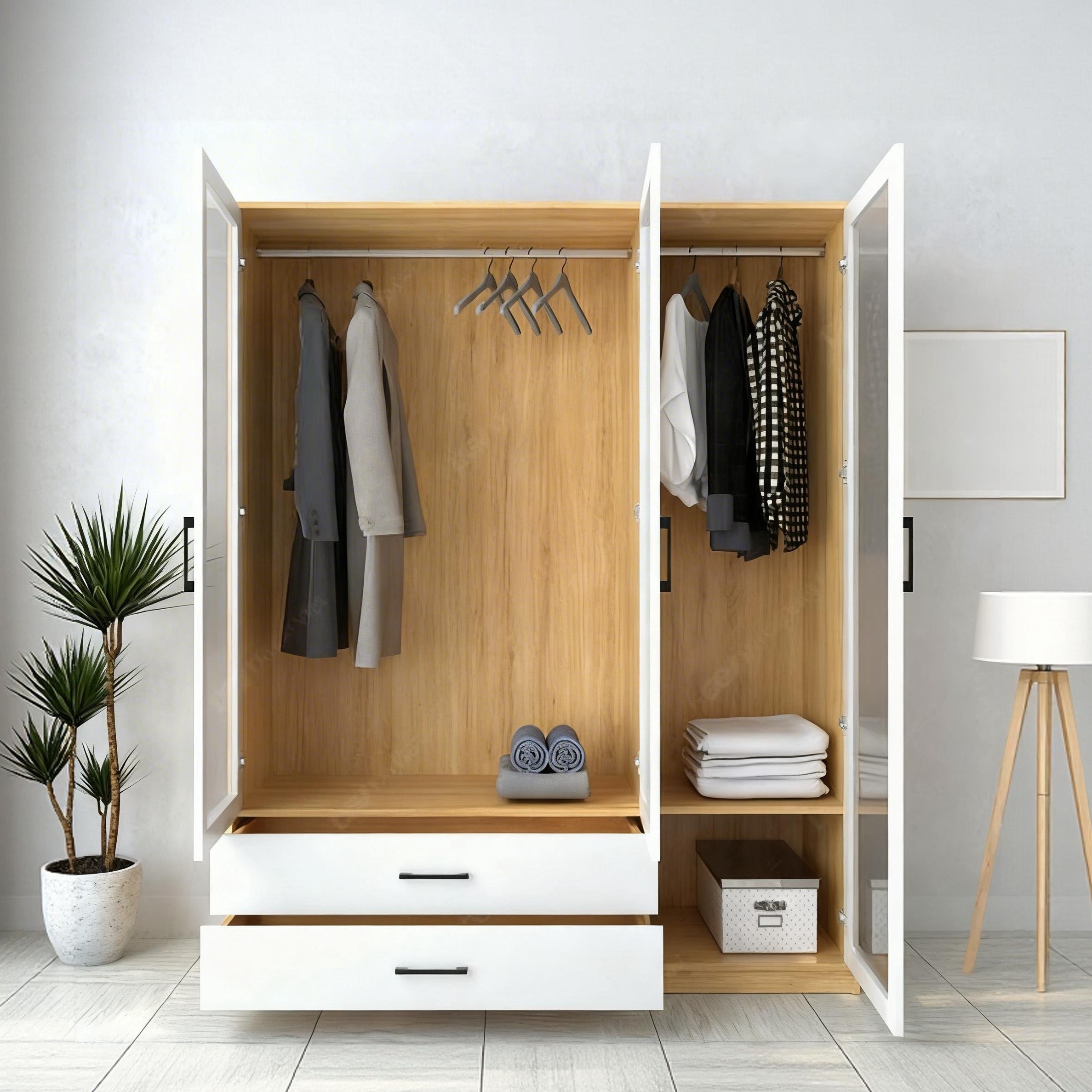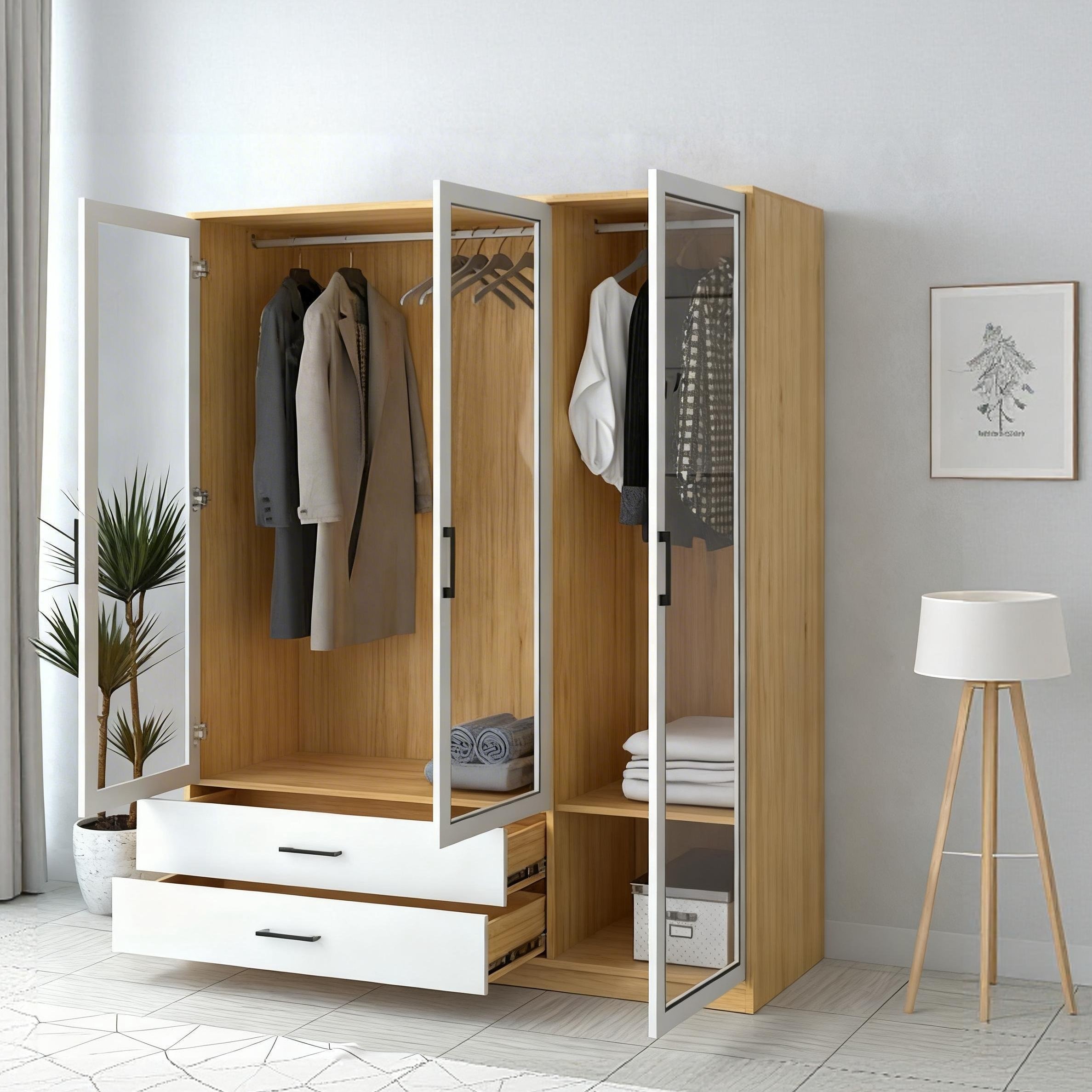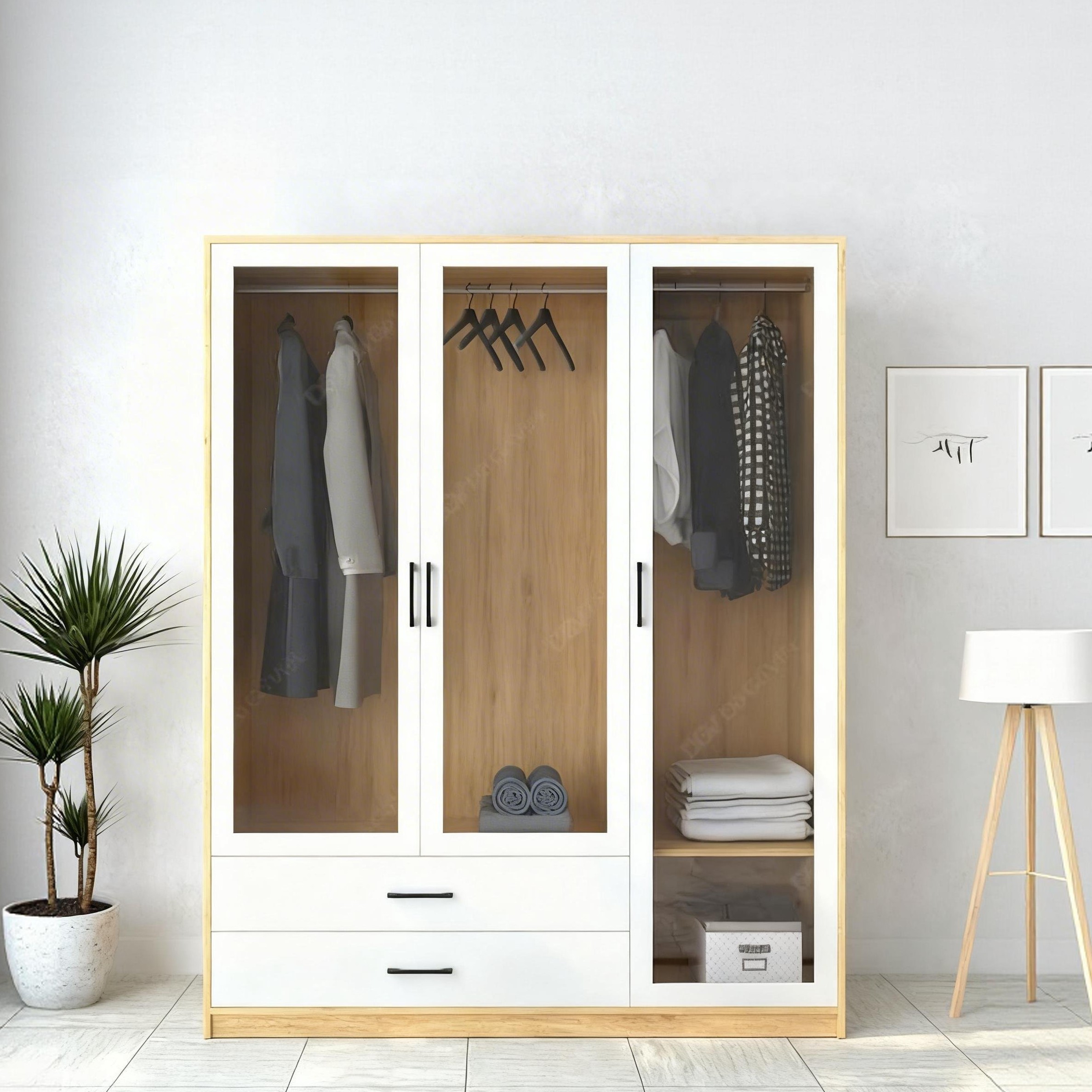 Tủ quần áo gỗ MDF 3 cánh kính + 2 ngăn kéo