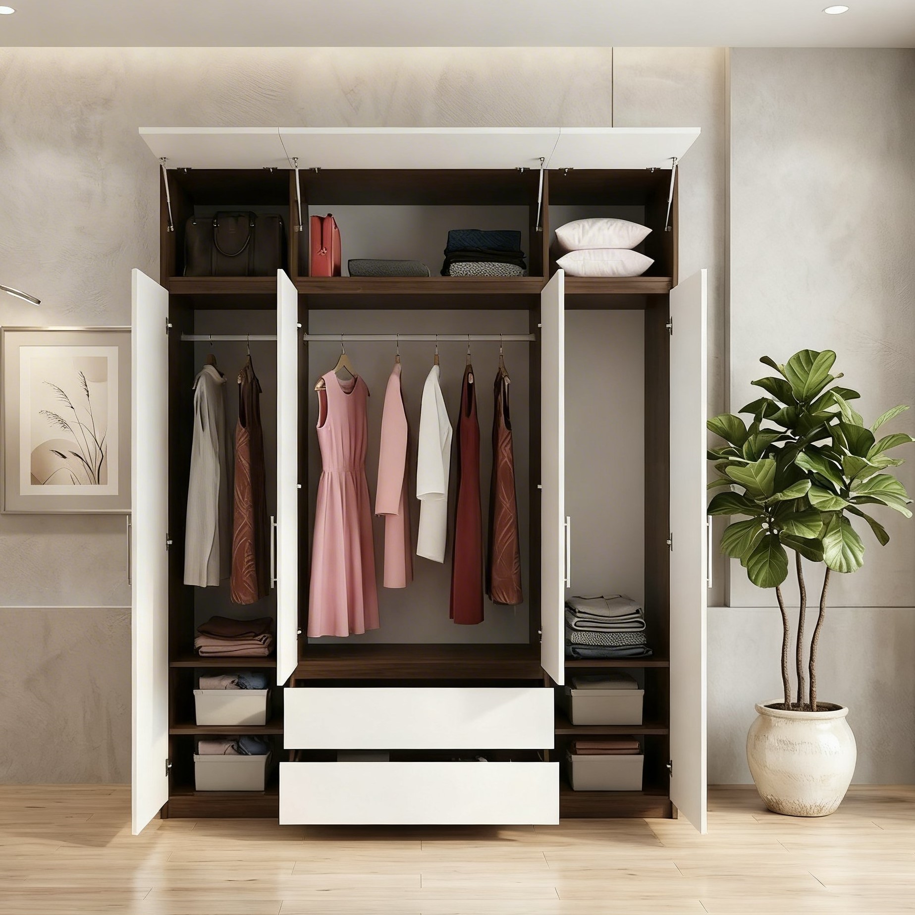 Tủ gỗ cao cấp 4 cánh TG438 0Tủ gỗ cao cấp 4 cánh TG438 1