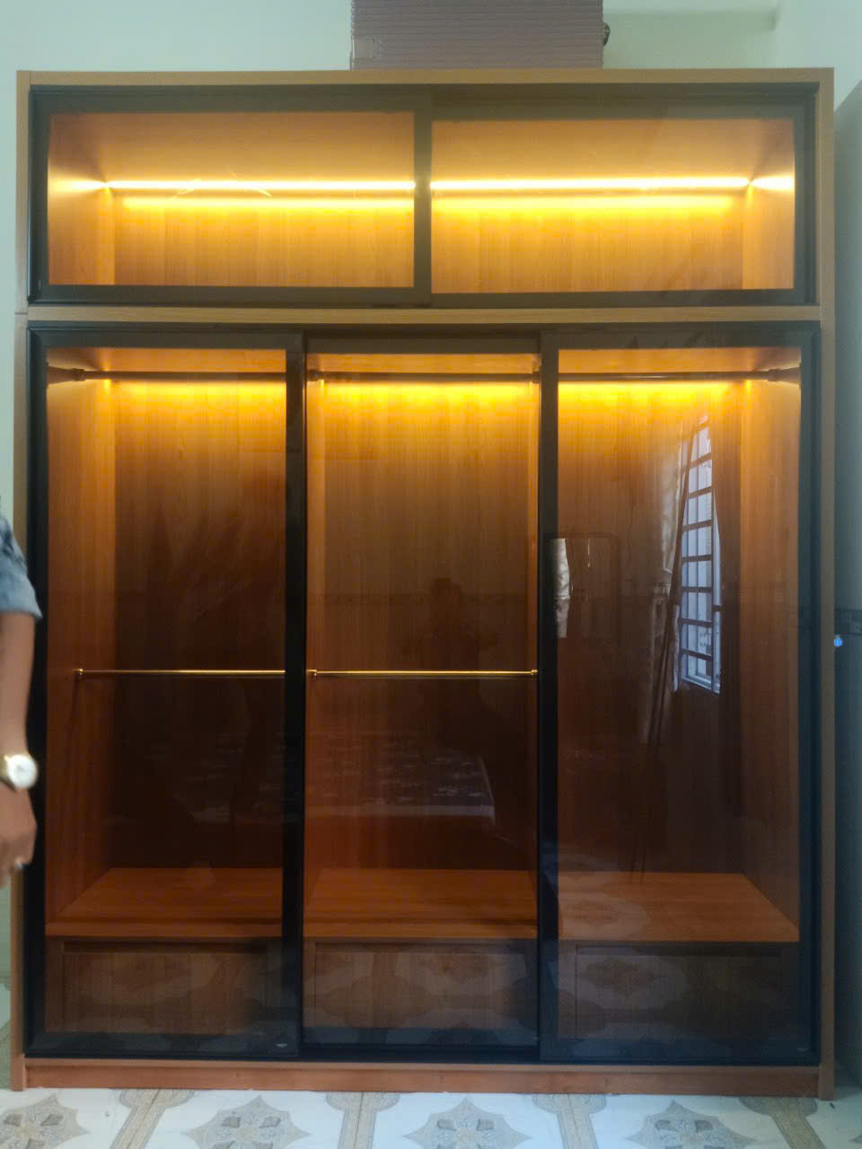 * Chất liệu : Thùng gỗ MDF - Cánh kính khung nhôm