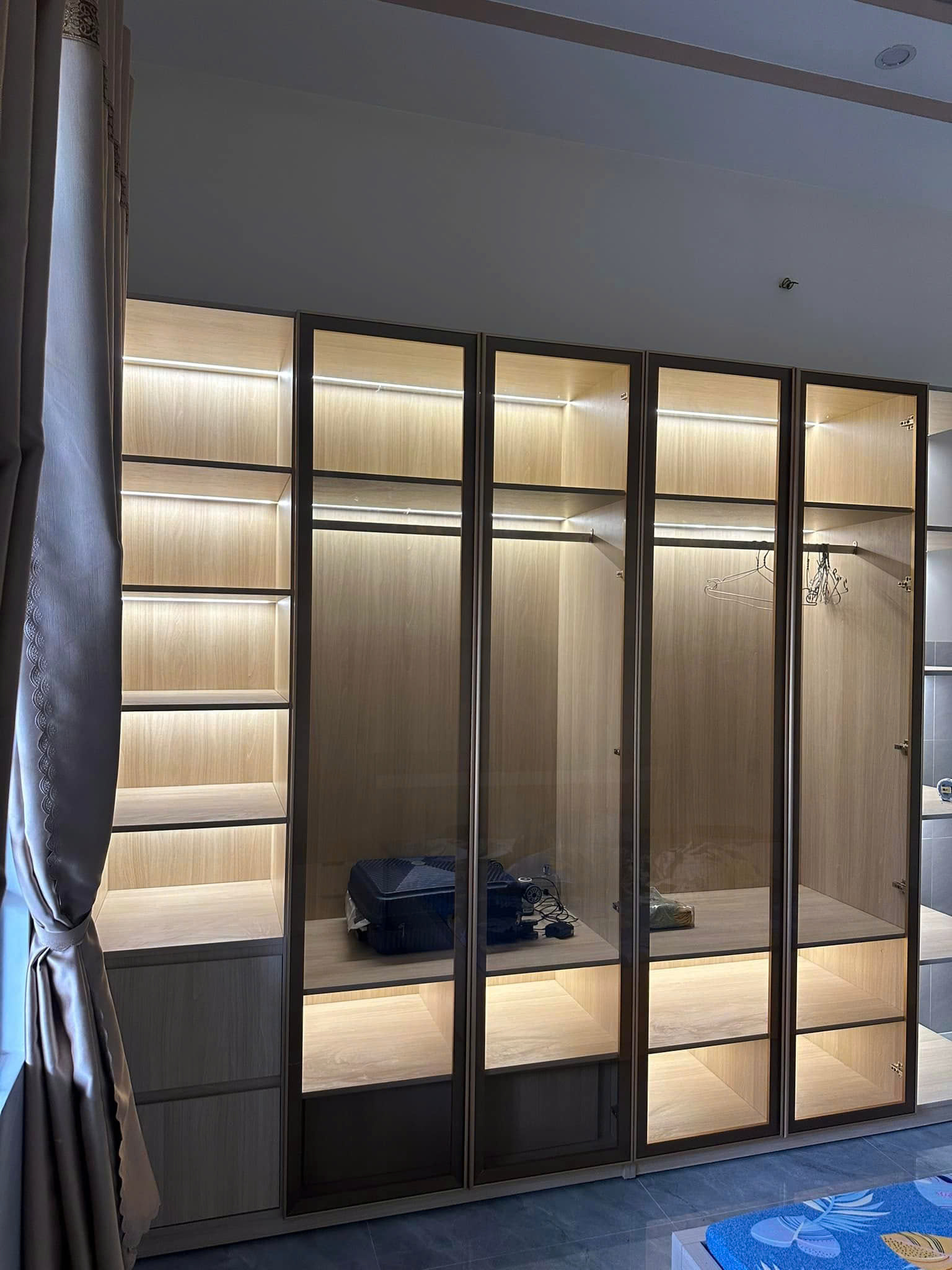 * Chất liệu : Thùng gỗ MDF - Cánh kính khung nhôm