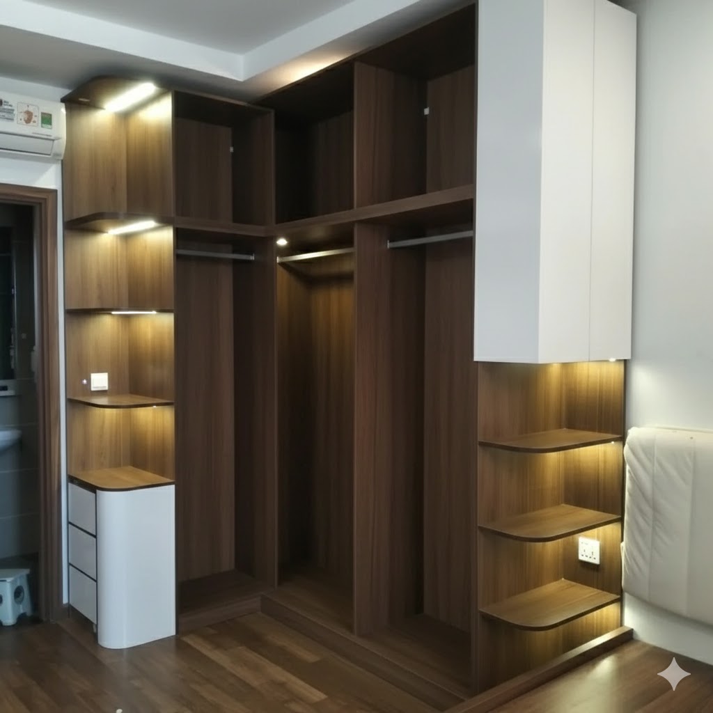 Tủ quần áo gỗ MDF đóng theo yêu cầu tính m2