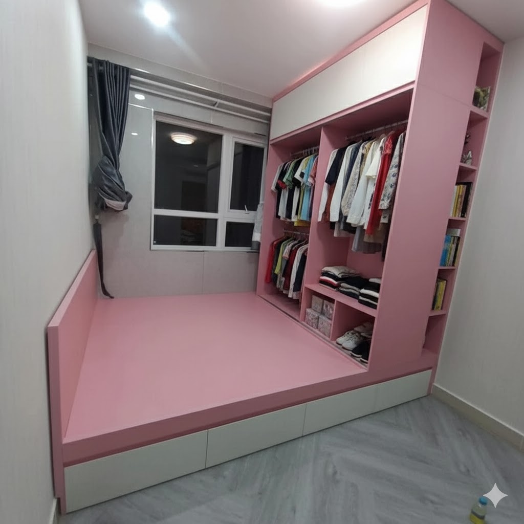 Tủ quần áo liền giường gỗ MDF TLG15