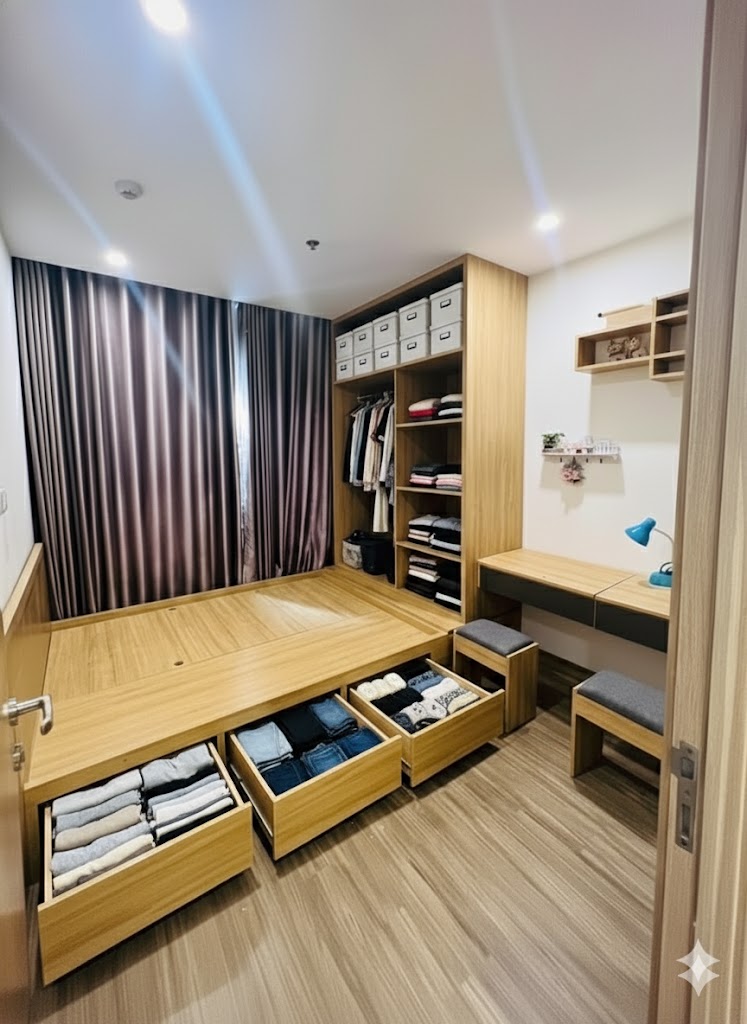 - Tủ áo : Ngang 1m6x55cmx2m7