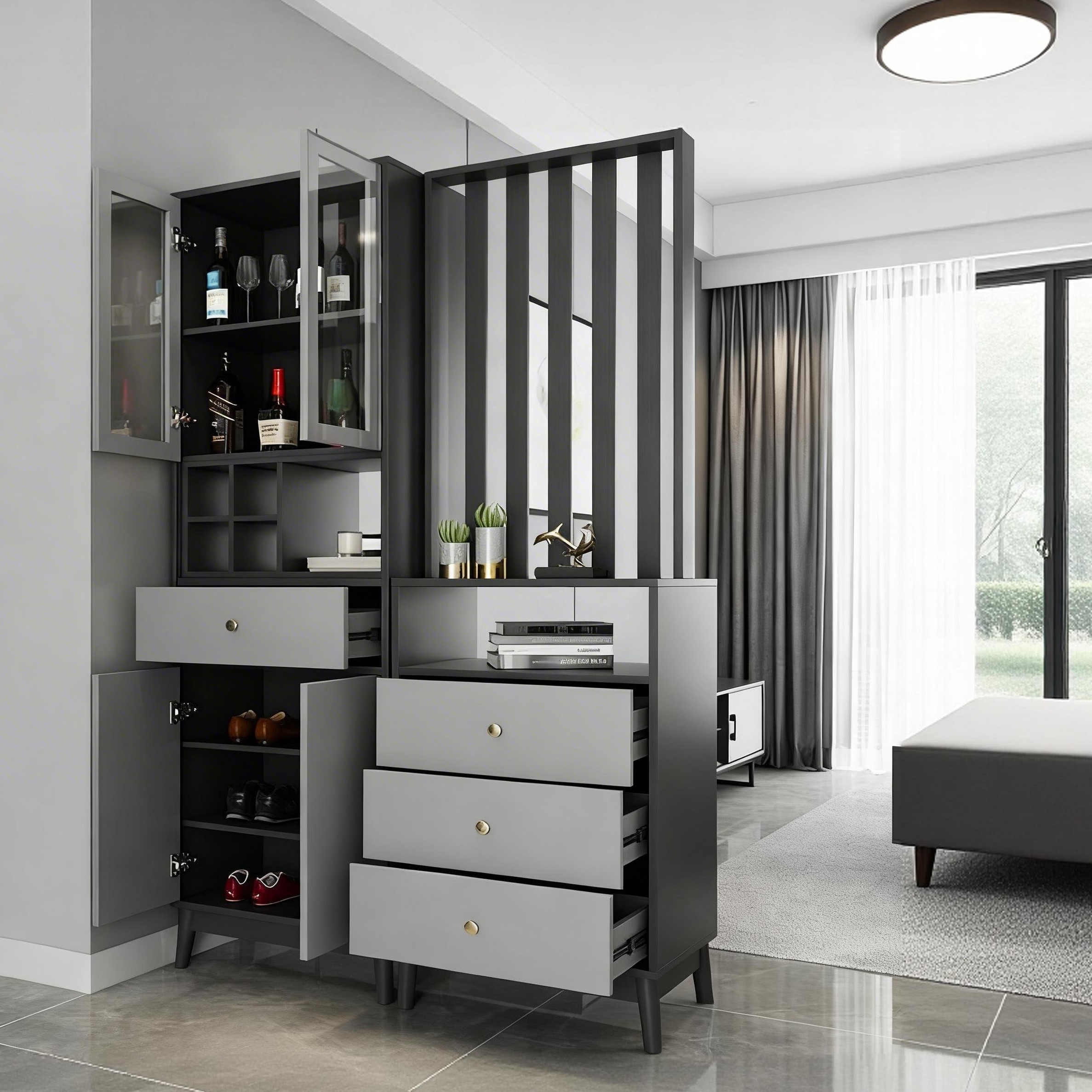 Tủ rượu cánh kính kết hợp ngăn kéo hiện đại